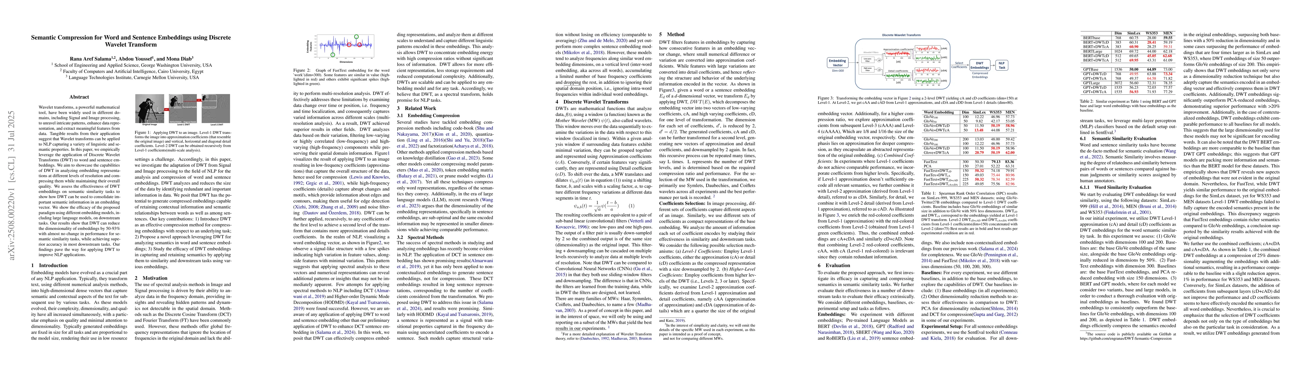 The paper presents an effective application of DWT for compressing word and sentence embeddings, revealing new insights into the structure of these embeddings and exposing hidden patterns and semantic information.