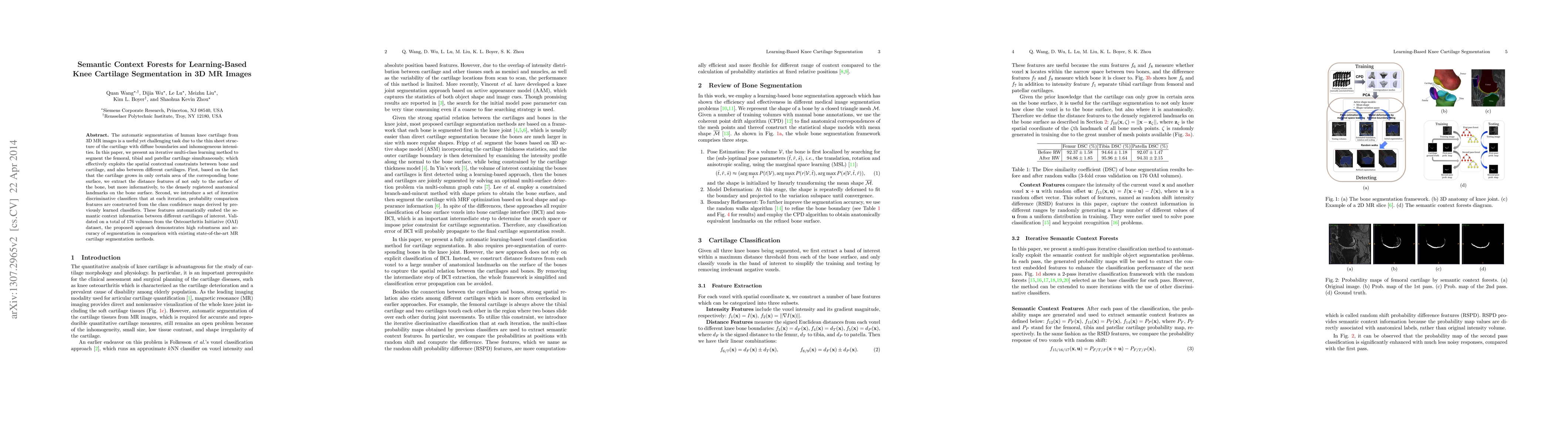 This paper proposes an iterative multi-class learning method for segmenting knee cartilage from 3D MR images, leveraging spatial contextual constraints and discriminative classifiers to enhance segmentation accuracy. Validated on 176 volumes from the Osteoarthritis Initiative, the method shows superior robustness and precision compared to existing techniques.