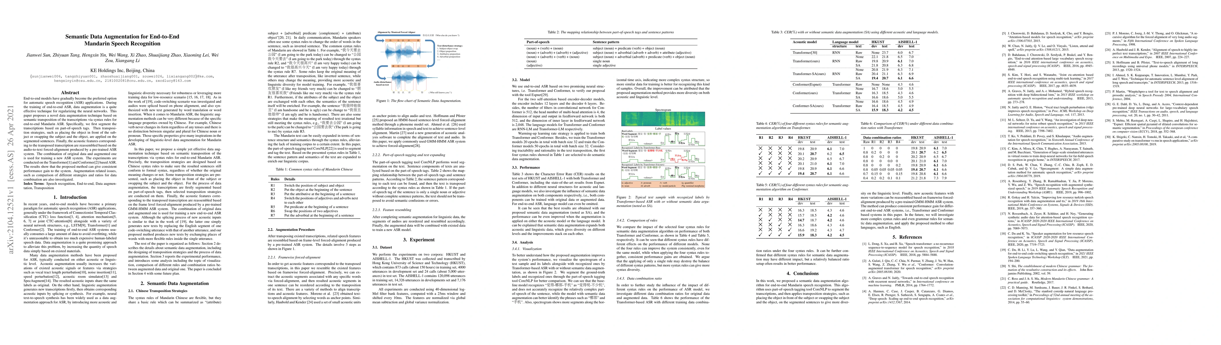 This paper proposes a semantic data augmentation technique for end-to-end Mandarin speech recognition by transposing transcriptions based on syntax rules, which improves model performance. Experiments on Transformer and Conformer models show consistent gains, highlighting the effectiveness of the method.