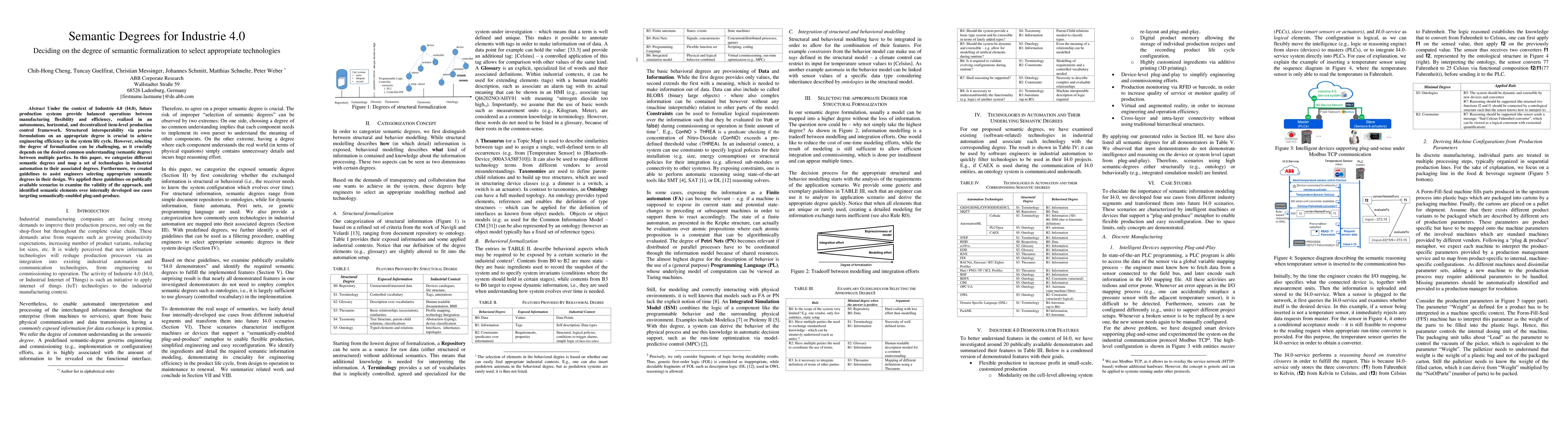 Under the context of Industrie 4.0 (I4.0), future production systems provide balanced operations between manufacturing flexibility and efficiency, realized in an autonomous, horizontal, and decentralized item-level production control framework. Structured interoperability via precise formulations on an appropriate degree is crucial to achieve engineering efficiency in the system life cycle. However, selecting the degree of formalization can be challenging, as it crucially depends on the desired common understanding (semantic degree) between multiple parties. In this paper, we categorize different semantic degrees and map a set of technologies in industrial automation to their associated degrees. Furthermore, we created guidelines to assist engineers selecting appropriate semantic degrees in their design. We applied these guidelines on publically available scenarios to examine the validity of the approach, and identified semantic elements over internally developed use cases targeting semantically-enabled plug-and-produce.