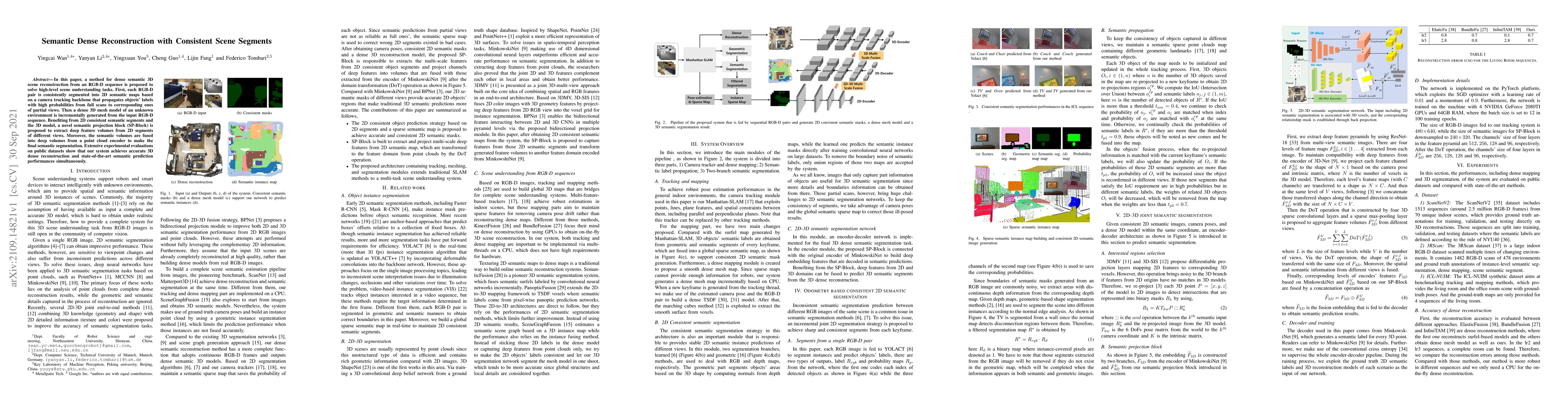 This paper proposes a method for dense semantic 3D scene reconstruction from RGB-D sequences, utilizing consistent 2D segmentation and a novel semantic projection block to achieve accurate 3D mesh models and state-of-the-art semantic predictions. Experimental results demonstrate superior performance on public datasets.