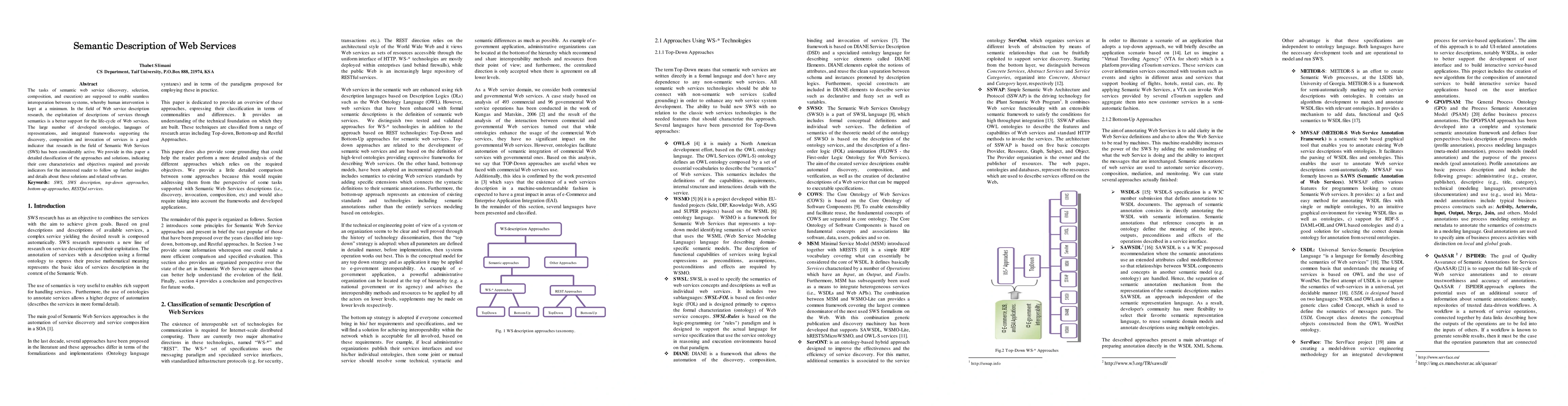 This paper classifies various approaches and solutions in Semantic Web Services, focusing on their core characteristics and objectives to support the discovery, selection, composition, and execution of web services with minimal human intervention. It provides an overview of the current state of research and indicates resources for further exploration.