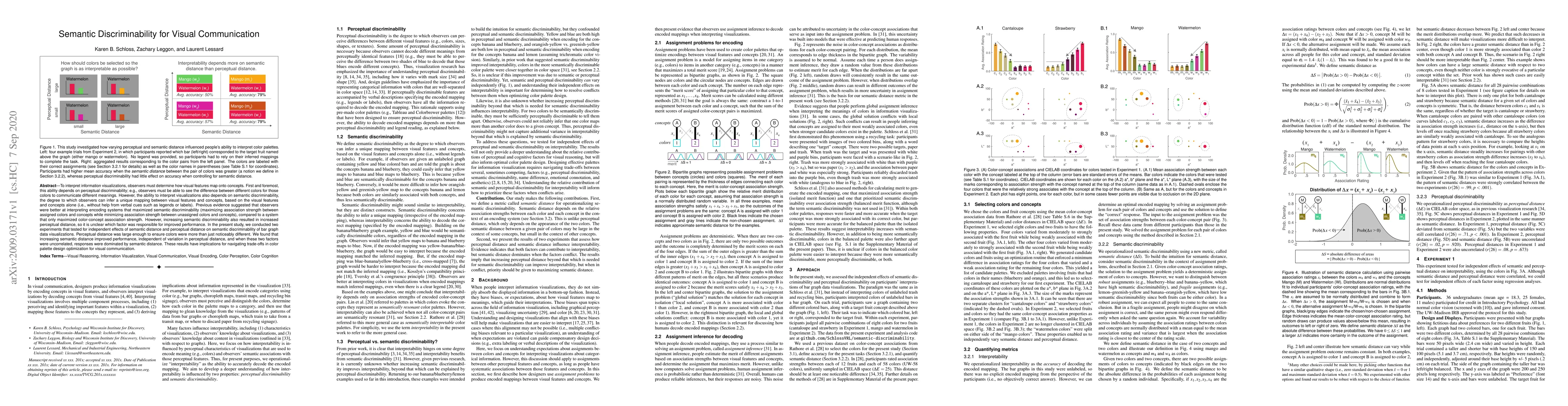This study investigates how semantic discriminability—the ability to infer unique mappings between visual features and concepts—affects the interpretation of information visualizations. Results from two experiments show that increasing semantic distance, independent of perceptual distance, enhances performance, indicating that semantic discriminability is crucial for effective visual communication.