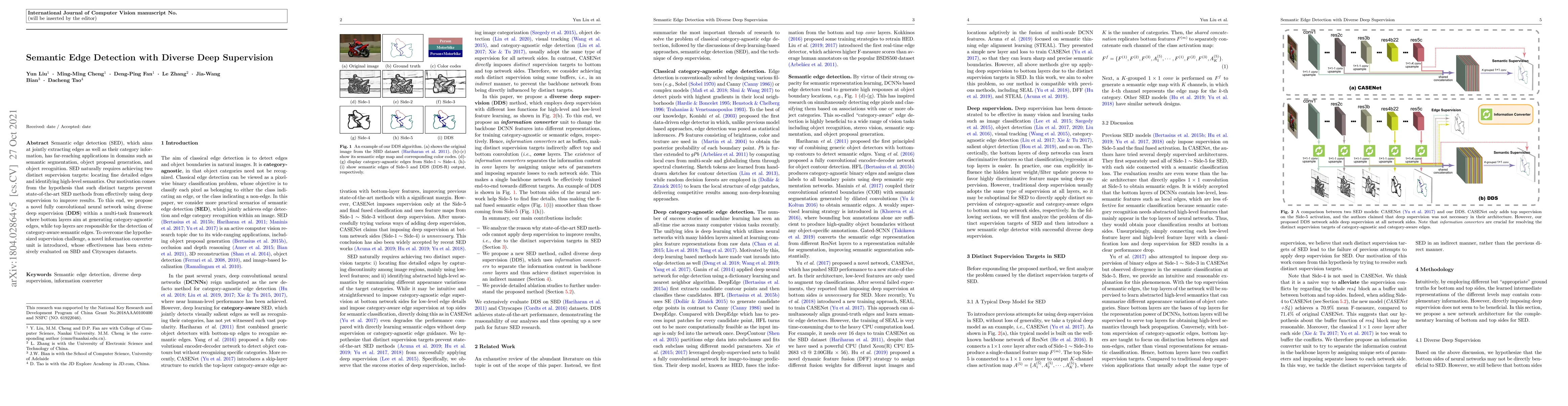 This paper proposes a novel fully convolutional neural network with diverse deep supervision to improve semantic edge detection, addressing the challenge of distinguishing fine-detailed edges from high-level semantics. The method introduces an information converter unit to bridge the gap between different supervision levels, evaluated on SBD and Cityscapes datasets.