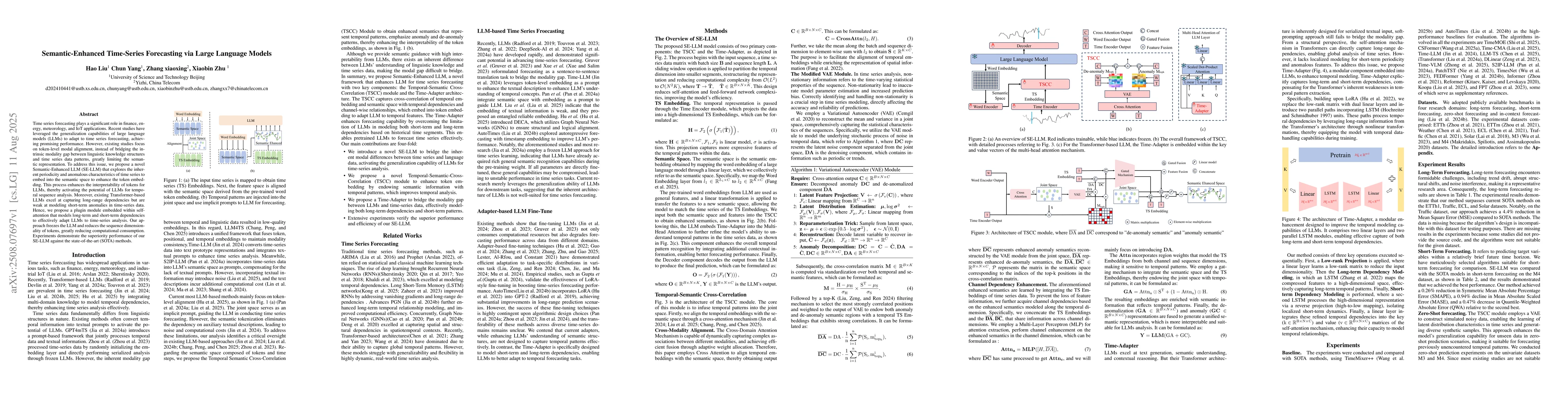 The paper proposes Semantic-Enhanced LLM (SE-LLM) for time-series forecasting, addressing the modality gap between language models and time-series data by embedding temporal patterns into the semantic space and using a Time-Adapter plugin to model both long-term and short-term dependencies.