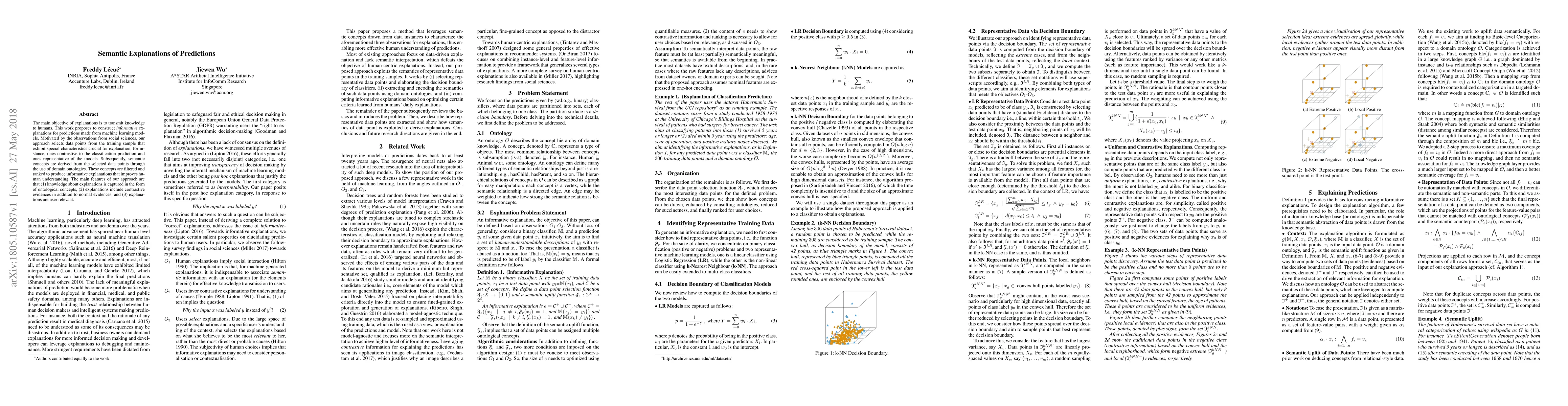 This paper proposes a method to generate informative explanations for machine learning predictions by selecting key data points and deriving semantic concepts using domain ontologies. The explanations are enhanced by including contrastive evidence and are tailored to be relevant to the user.