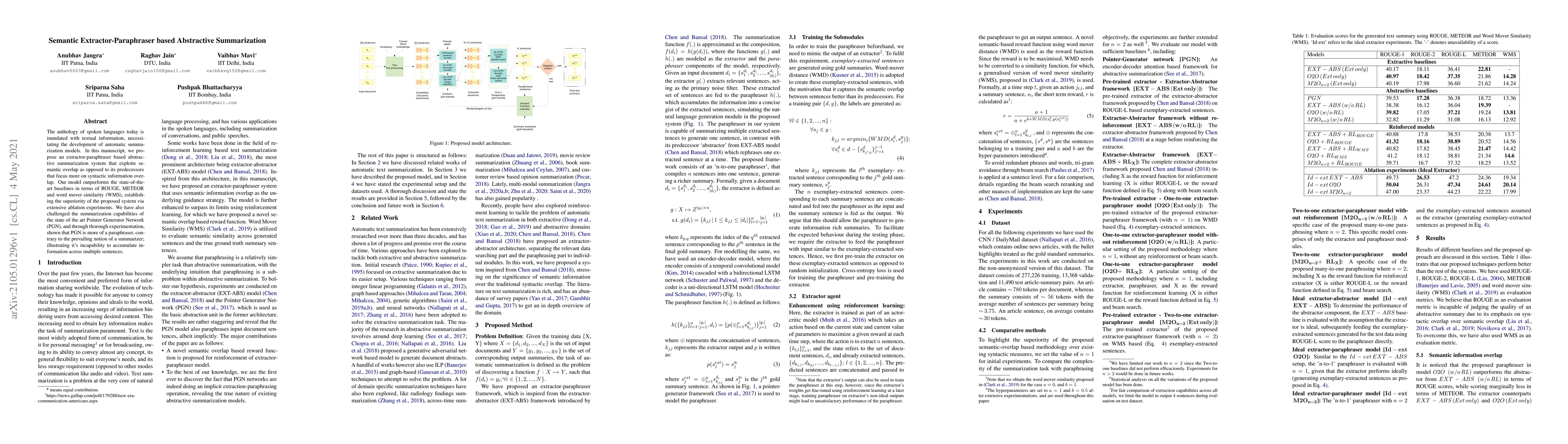 The anthology of spoken languages today is inundated with textual information, necessitating the development of automatic summarization models. In this manuscript, we propose an extractor-paraphraser based abstractive summarization system that exploits semantic overlap as opposed to its predecessors that focus more on syntactic information overlap. Our model outperforms the state-of-the-art baselines in terms of ROUGE, METEOR and word mover similarity (WMS), establishing the superiority of the proposed system via extensive ablation experiments. We have also challenged the summarization capabilities of the state of the art Pointer Generator Network (PGN), and through thorough experimentation, shown that PGN is more of a paraphraser, contrary to the prevailing notion of a summarizer; illustrating it's incapability to accumulate information across multiple sentences.