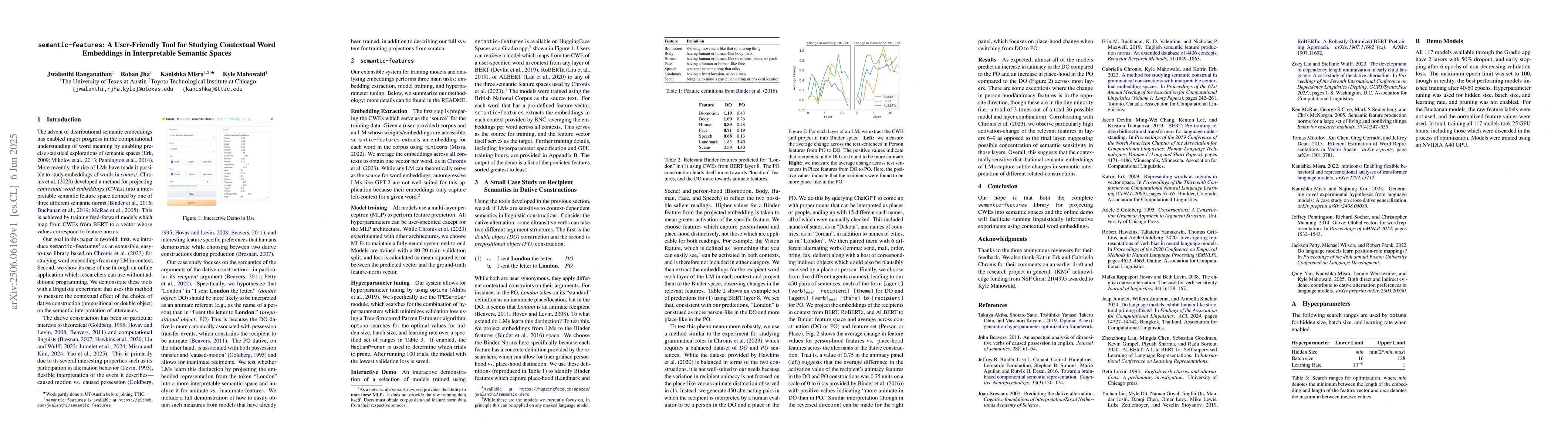 This study uses a tool called semantic-features to analyze how word embeddings change in meaning depending on sentence structure, showing that certain words can be more likely to refer to people or places.