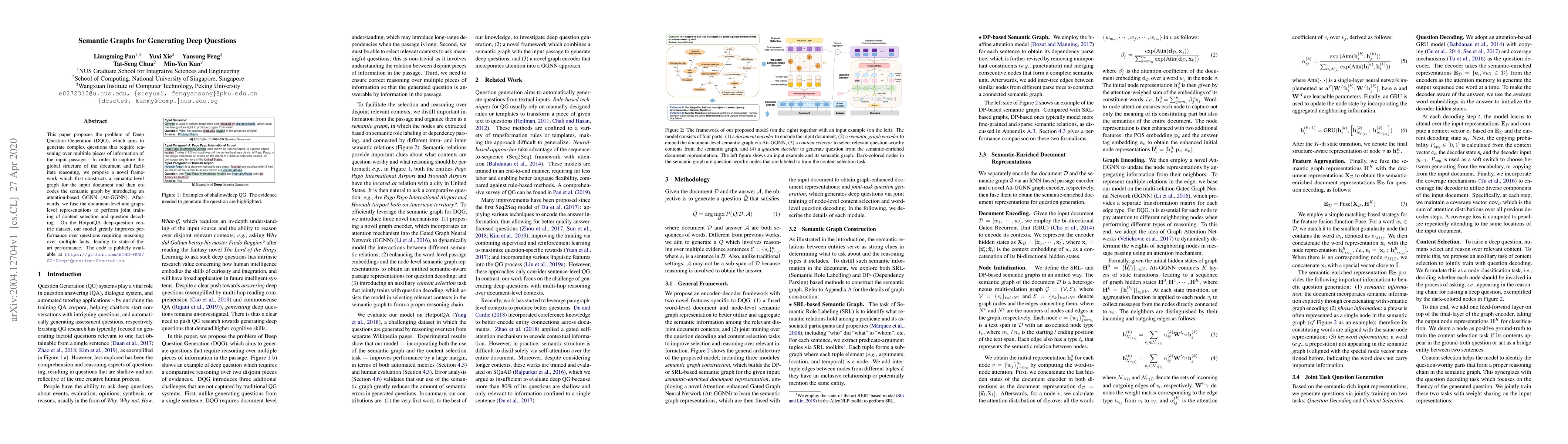 A new framework uses semantic graphs to generate deep questions that require reasoning over multiple pieces of information, achieving state-of-the-art performance on a popular question generation dataset.