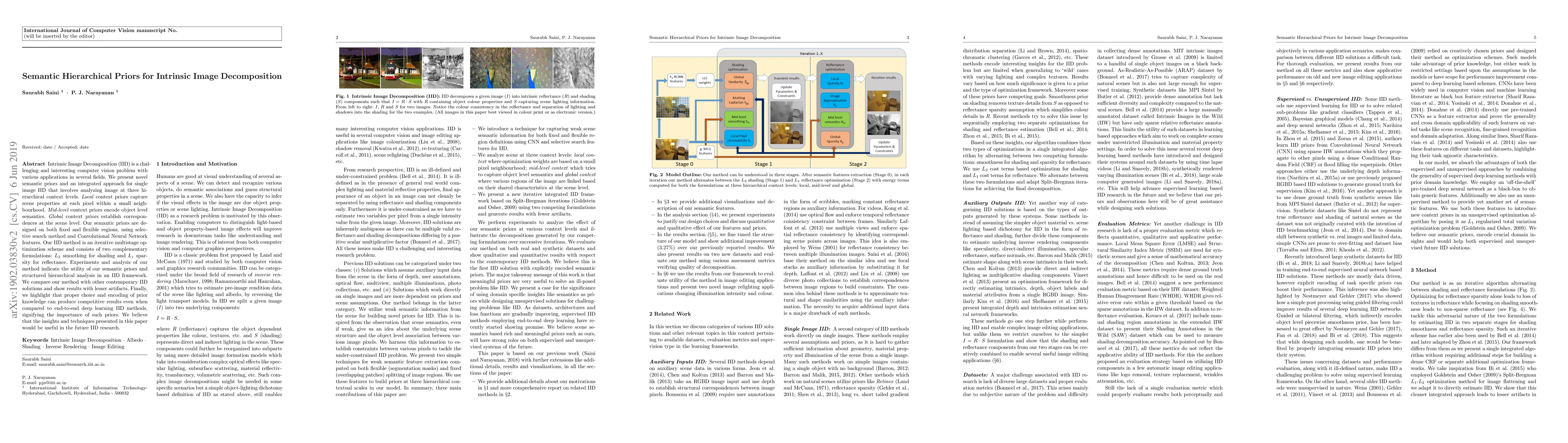 This paper proposes a novel approach for Intrinsic Image Decomposition using semantic hierarchical priors analyzed at three context levels: local, mid-level, and global. The method combines iterative optimization with $L_2$ and $L_1$ formulations, demonstrating competitive results against contemporary methods and emphasizing the importance of prior knowledge in achieving effective decomposition.