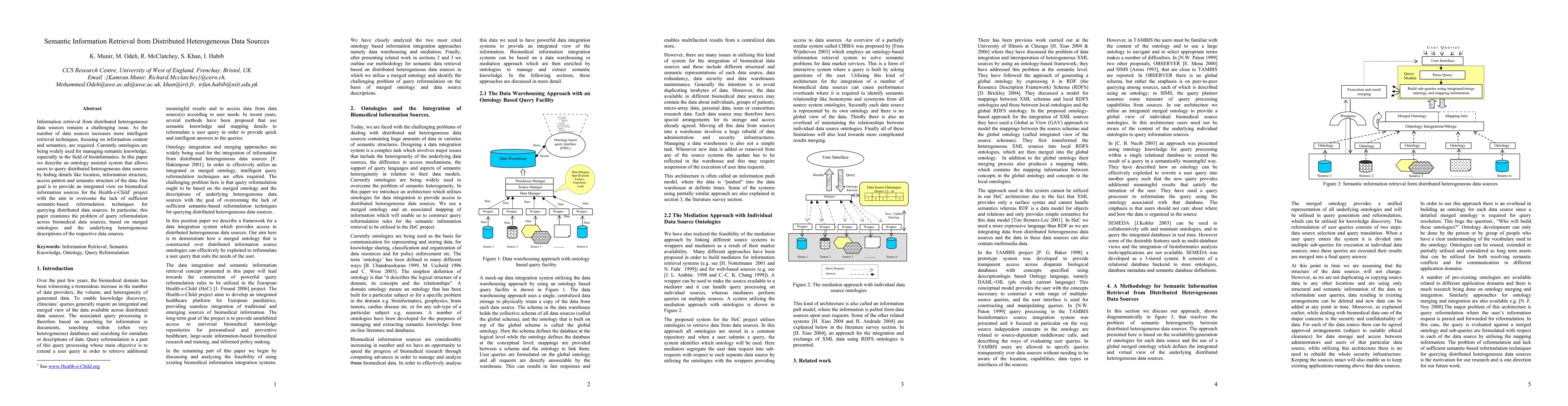 This paper proposes an ontology-assisted system for semantic information retrieval from distributed heterogeneous data sources, aiming to provide an integrated view for biomedical information in the Health-e-Child project. It focuses on query reformulation across diverse data sources by leveraging merged ontologies to overcome current limitations in semantic-based querying.