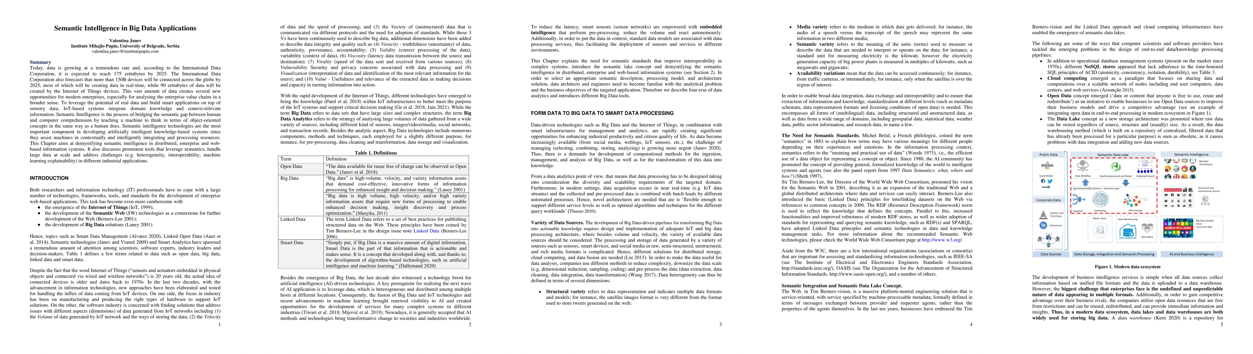 Today, data is growing at a tremendous rate and, according to the International Data Corporation, it is expected to reach 175 zettabytes by 2025. The International Data Corporation also forecasts that more than 150B devices will be connected across the globe by 2025, most of which will be creating data in real-time, while 90 zettabytes of data will be created by the Internet of Things devices. This vast amount of data creates several new opportunities for modern enterprises, especially for analysing the enterprise value chains in a broader sense. To leverage the potential of real data and build smart applications on top of sensory data, IoT-based systems integrate domain knowledge and context-relevant information. Semantic Intelligence is the process of bridging the semantic gap between human and computer comprehension by teaching a machine to think in terms of object-oriented concepts in the same way as a human does. Semantic intelligence technologies are the most important component in developing artificially intelligent knowledge-based systems since they assist machines in contextually and intelligently integrating and processing resources. This Chapter aims at demystifying semantic intelligence in distributed, enterprise and web-based information systems. It also discusses prominent tools that leverage semantics, handle large data at scale and address challenges (e.g. heterogeneity, interoperability, machine learning explainability) in different industrial applications.