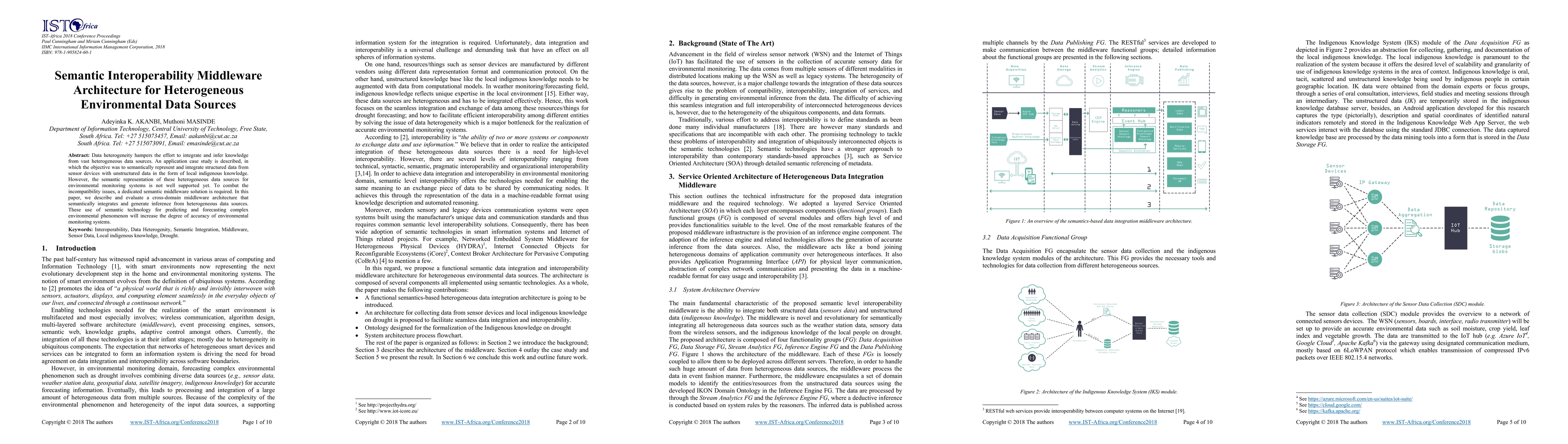 This paper proposes a semantic middleware architecture to integrate and infer knowledge from heterogeneous environmental data sources, addressing the challenges of data heterogeneity. The architecture aims to semantically represent and combine structured sensor data with unstructured indigenous knowledge, enhancing the accuracy of environmental monitoring systems.