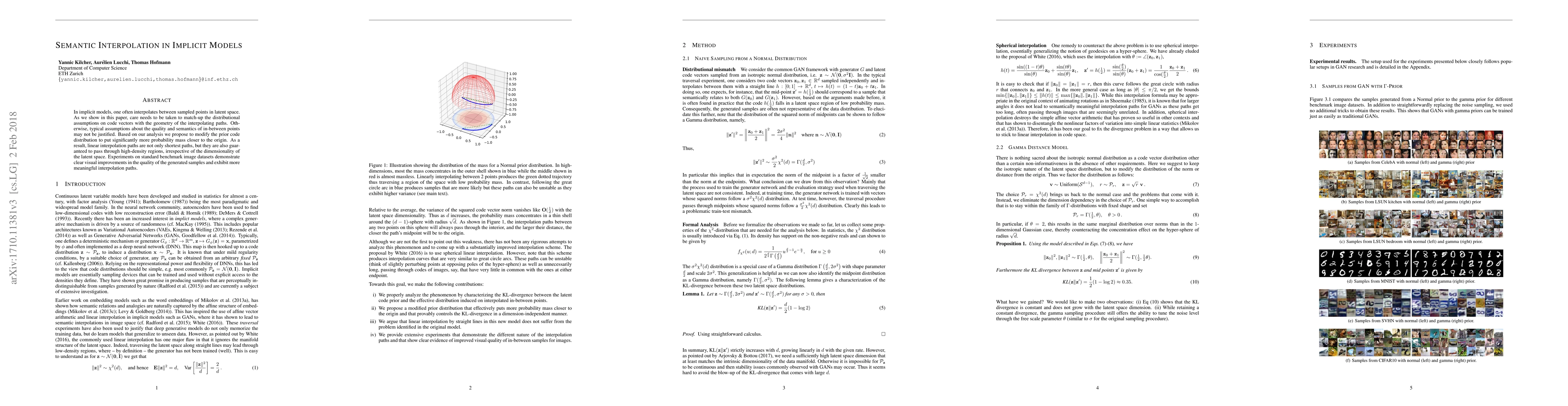 In implicit models, one often interpolates between sampled points in latent space. As we show in this paper, care needs to be taken to match-up the distributional assumptions on code vectors with the geometry of the interpolating paths. Otherwise, typical assumptions about the quality and semantics of in-between points may not be justified. Based on our analysis we propose to modify the prior code distribution to put significantly more probability mass closer to the origin. As a result, linear interpolation paths are not only shortest paths, but they are also guaranteed to pass through high-density regions, irrespective of the dimensionality of the latent space. Experiments on standard benchmark image datasets demonstrate clear visual improvements in the quality of the generated samples and exhibit more meaningful interpolation paths.