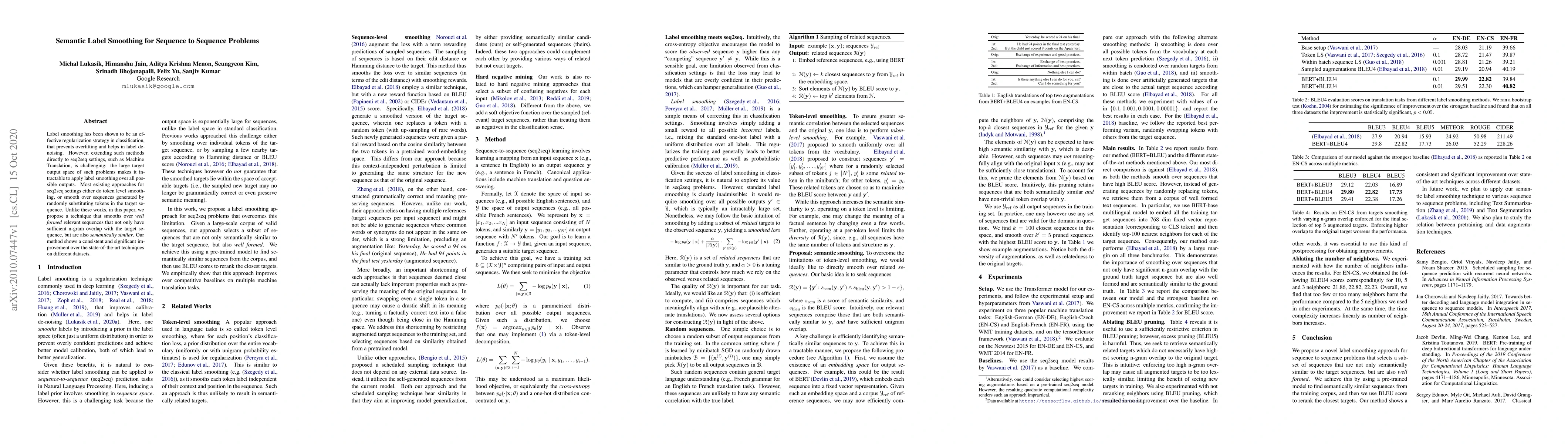 A new approach to smoothing labels in sequence-to-sequence problems shows significant improvement over existing methods, using well-formed sequences with semantic similarity to the target.