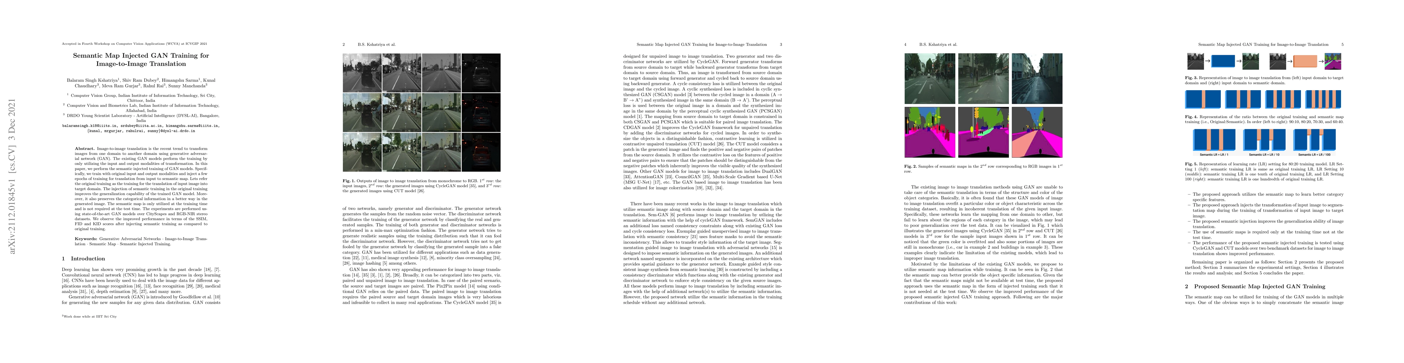 This paper introduces a method for improving GAN-based image-to-image translation by injecting semantic map training, which enhances generalization and preserves categorical information, resulting in better performance metrics. The semantic map is used only during training, not at test time.