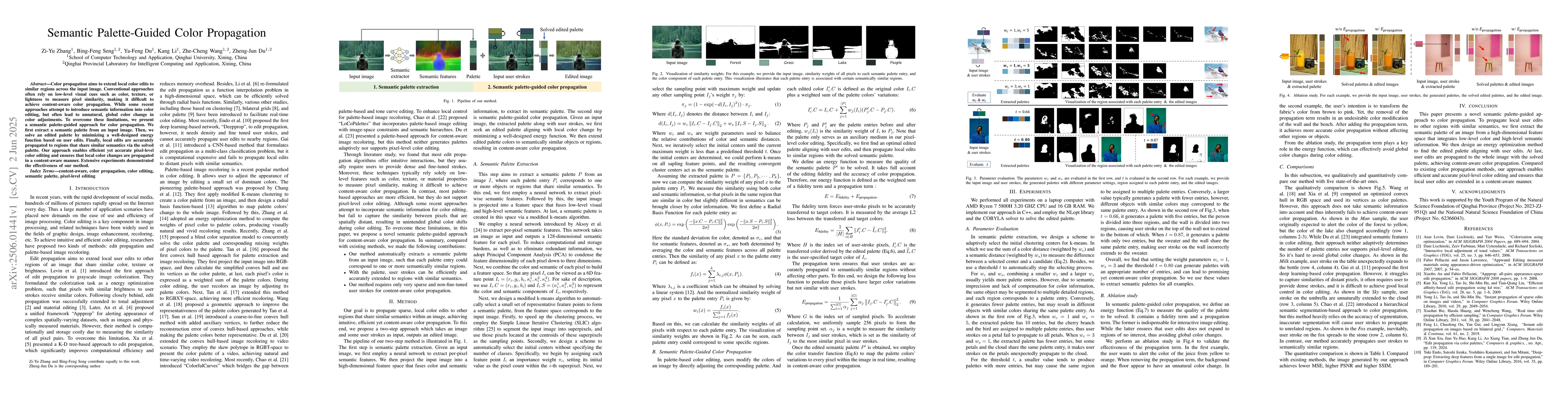 A new approach for color propagation in images is presented, which uses a semantic palette to accurately propagate local color edits in a content-aware manner.