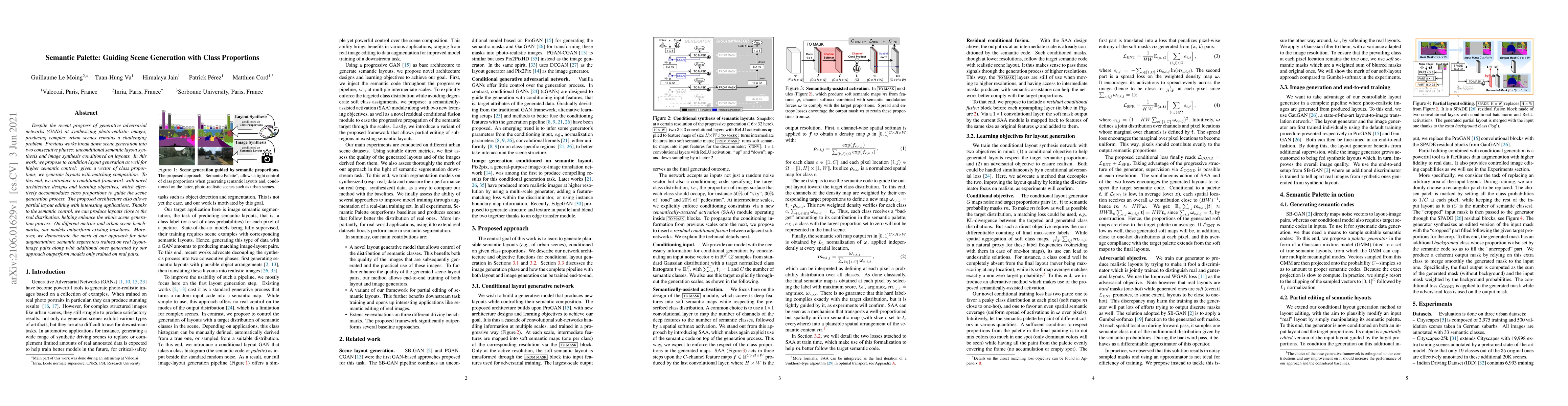 This research introduces 'Semantic Palette', a method that conditions layout generation in scene synthesis using class proportions, enhancing semantic control. It outperforms baselines on urban scene benchmarks and aids in training data augmentation for semantic segmenters.