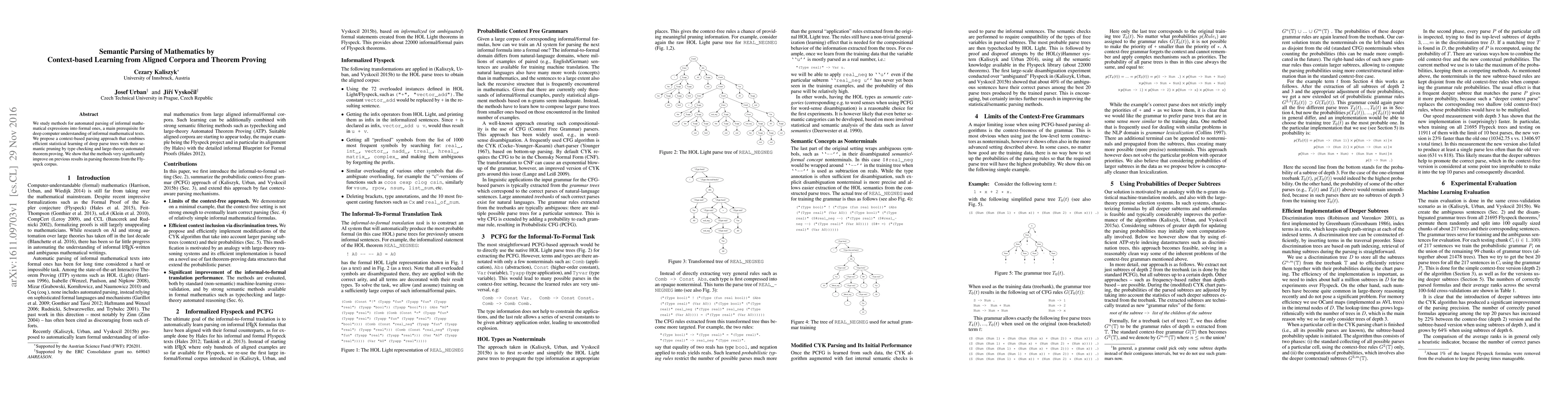 We study methods for automated parsing of informal mathematical expressions into formal ones, a main prerequisite for deep computer understanding of informal mathematical texts. We propose a context-based parsing approach that combines efficient statistical learning of deep parse trees with their semantic pruning by type checking and large-theory automated theorem proving. We show that the methods very significantly improve on previous results in parsing theorems from the Flyspeck corpus.