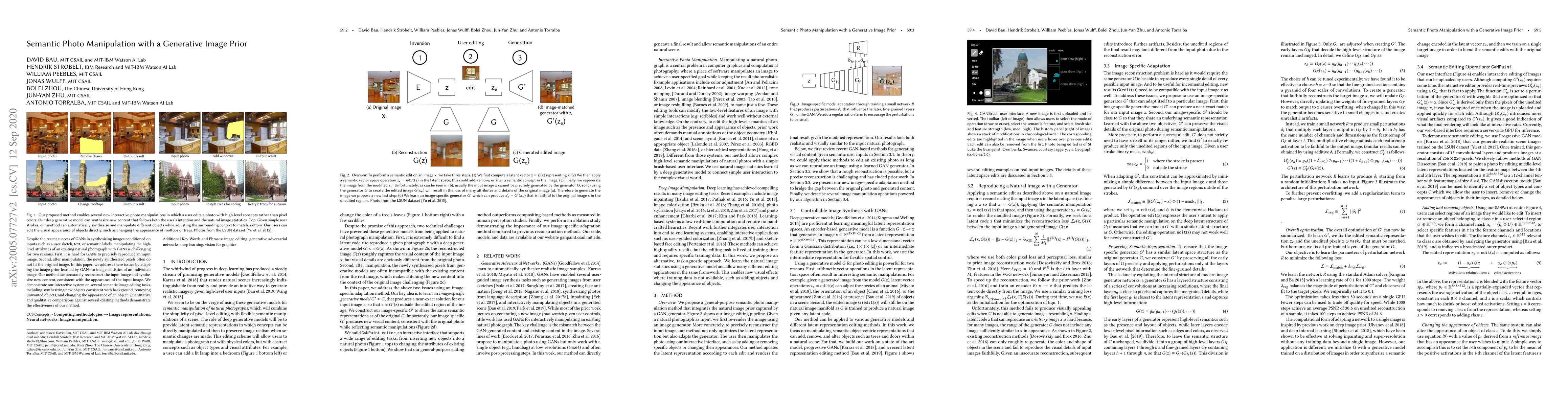 Despite the recent success of GANs in synthesizing images conditioned on inputs such as a user sketch, text, or semantic labels, manipulating the high-level attributes of an existing natural photograph with GANs is challenging for two reasons. First, it is hard for GANs to precisely reproduce an input image. Second, after manipulation, the newly synthesized pixels often do not fit the original image. In this paper, we address these issues by adapting the image prior learned by GANs to image statistics of an individual image. Our method can accurately reconstruct the input image and synthesize new content, consistent with the appearance of the input image. We demonstrate our interactive system on several semantic image editing tasks, including synthesizing new objects consistent with background, removing unwanted objects, and changing the appearance of an object. Quantitative and qualitative comparisons against several existing methods demonstrate the effectiveness of our method.