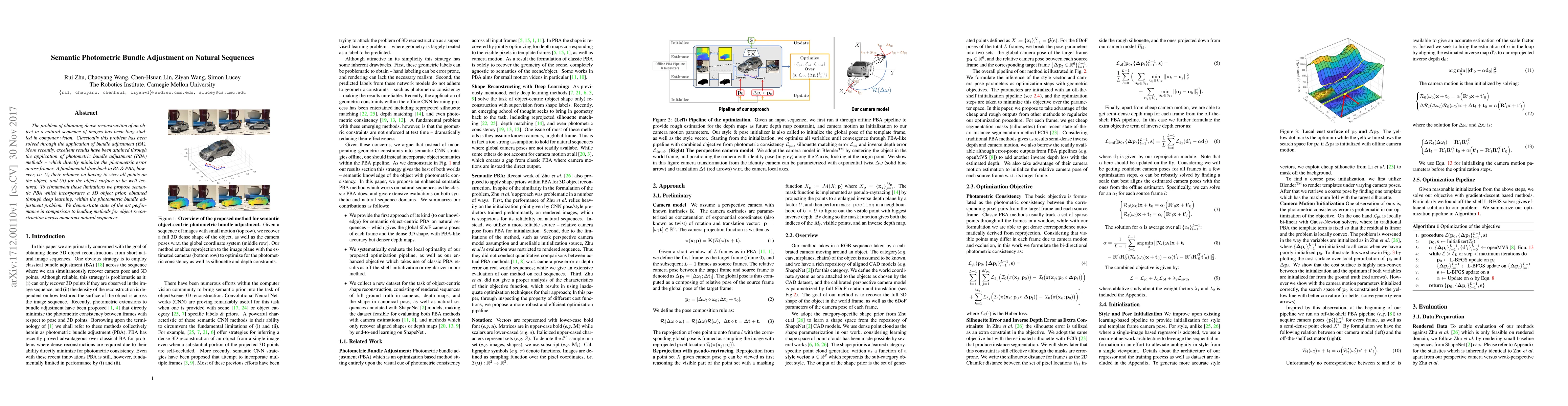 The problem of obtaining dense reconstruction of an object in a natural sequence of images has been long studied in computer vision. Classically this problem has been solved through the application of bundle adjustment (BA). More recently, excellent results have been attained through the application of photometric bundle adjustment (PBA) methods -- which directly minimize the photometric error across frames. A fundamental drawback to BA & PBA, however, is: (i) their reliance on having to view all points on the object, and (ii) for the object surface to be well textured. To circumvent these limitations we propose semantic PBA which incorporates a 3D object prior, obtained through deep learning, within the photometric bundle adjustment problem. We demonstrate state of the art performance in comparison to leading methods for object reconstruction across numerous natural sequences.