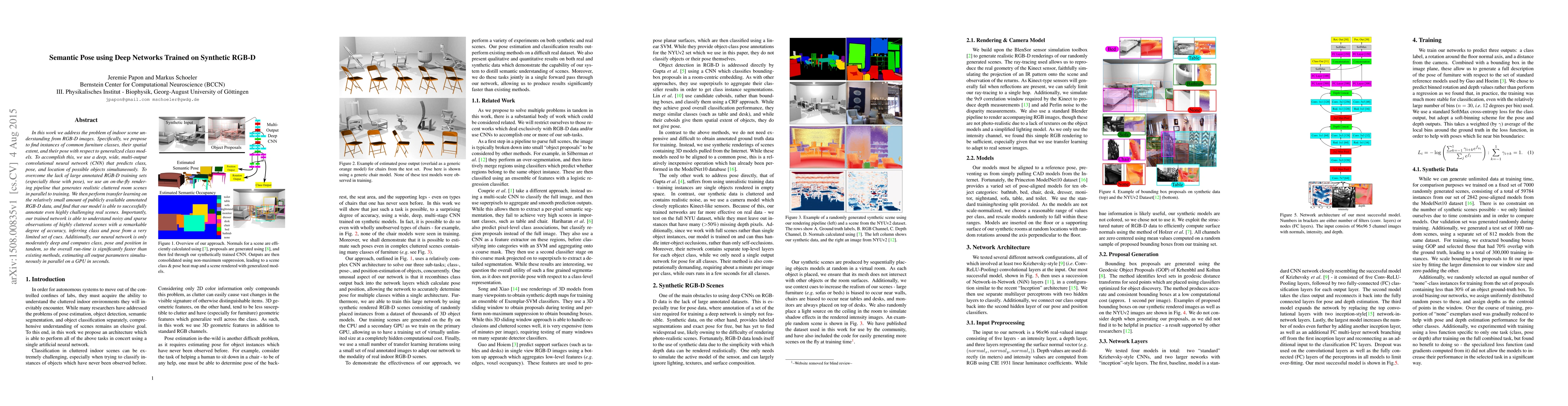 This paper proposes a deep convolutional neural network for indoor scene understanding from RGB-D images, focusing on identifying and determining the pose of common furniture. It leverages synthetic data for training and transfer learning to handle real-world cluttered scenes efficiently.