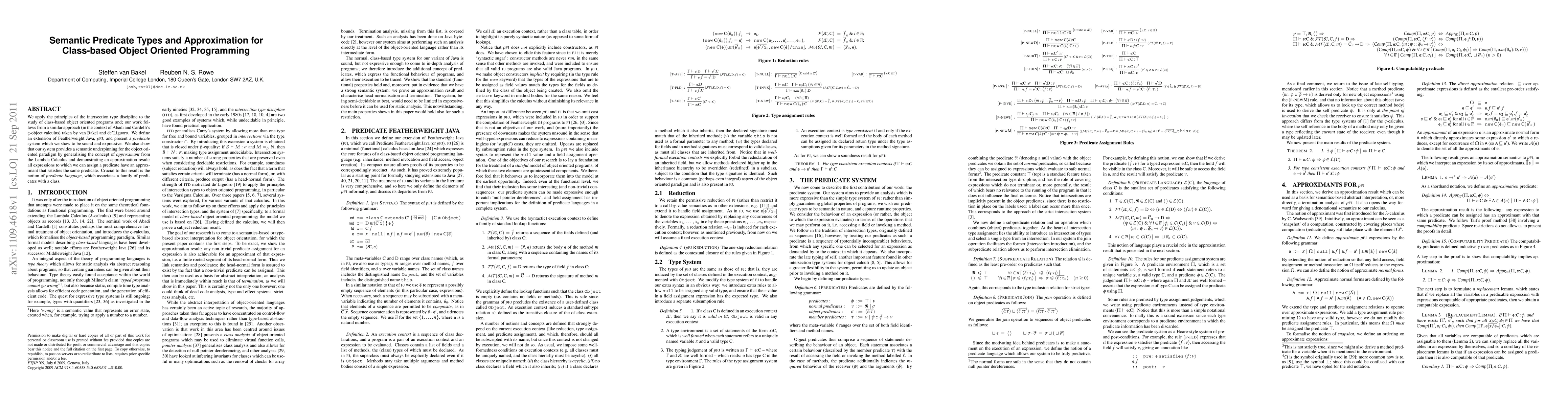 This paper introduces a new approach to class-based object-oriented programming using intersection types, providing a semantic underpinning for the paradigm and demonstrating approximation results for a predicate system.