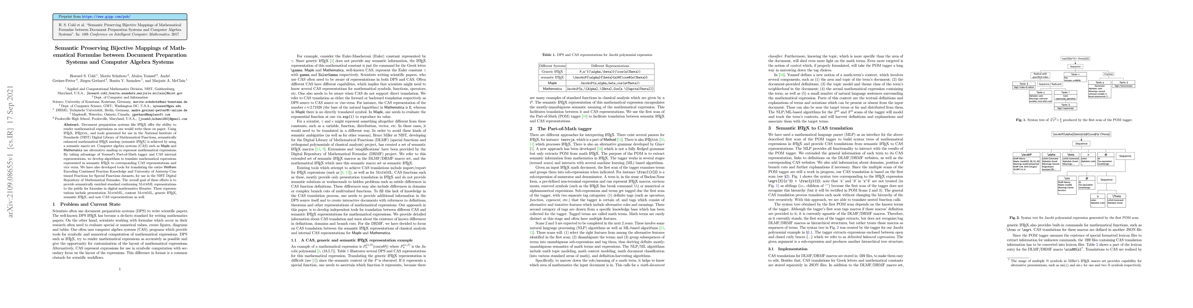 This paper develops algorithms and tools for translating mathematical expressions between document preparation systems like LaTeX and computer algebra systems like Maple and Mathematica, aiming to provide semantically enriched MathML representations for digital mathematics libraries. The focus is on creating bijective mappings that preserve the semantics of mathematical formulae.