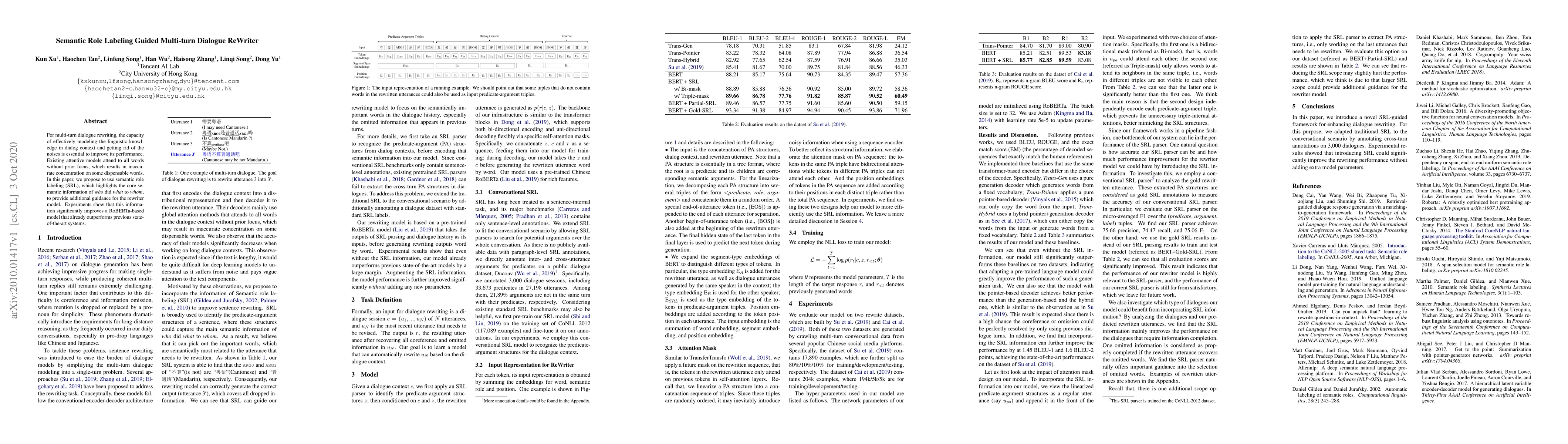 This paper proposes using semantic role labeling (SRL) to guide a multi-turn dialogue rewriter model, enhancing its ability to focus on core semantic information and improve performance. Experiments demonstrate that incorporating SRL into a RoBERTa-based model significantly outperforms previous state-of-the-art systems.