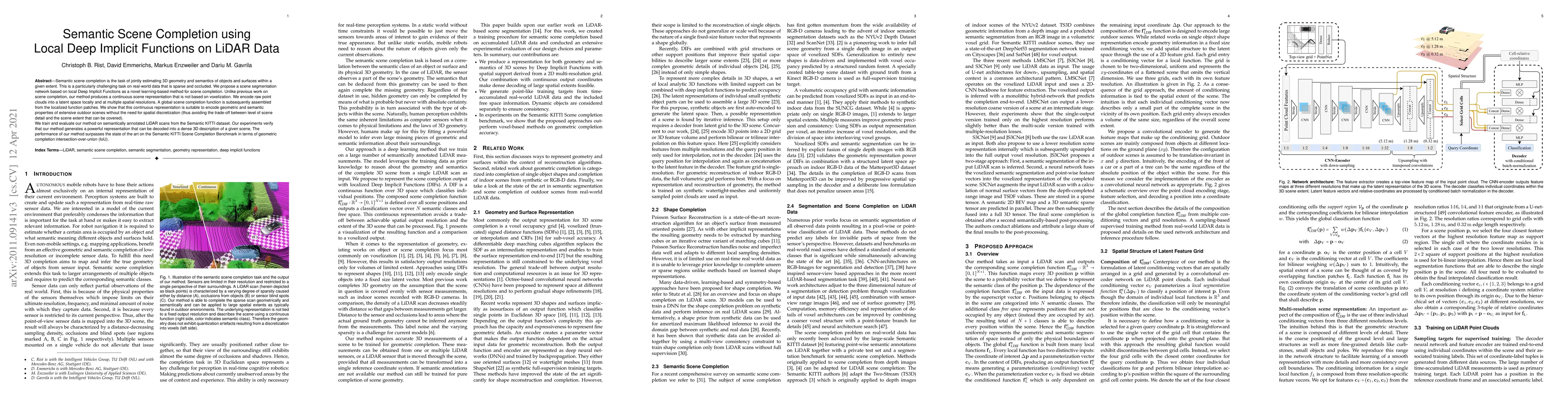 This paper proposes a novel scene segmentation network using local Deep Implicit Functions for semantic scene completion from LiDAR data, offering a continuous representation that avoids voxelization. The method outperforms state-of-the-art on the Semantic KITTI dataset in terms of geometric completion accuracy.