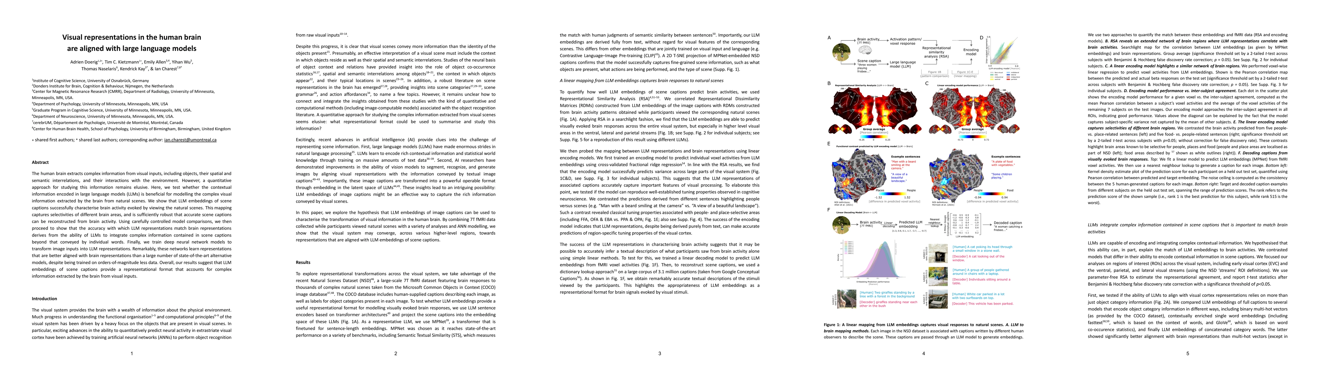 Interpreting the meaning of a visual scene requires not only identification of its constituent objects, but also a rich semantic characterization of object interrelations. Here, we study the neural mechanisms underlying visuo-semantic transformations by applying modern computational techniques to a large-scale 7T fMRI dataset of human brain responses elicited by complex natural scenes. Using semantic embeddings obtained by applying linguistic deep learning models to human-generated scene descriptions, we identify a widely distributed network of brain regions that encode semantic scene descriptions. Importantly, these semantic embeddings better explain activity in these regions than traditional object category labels. In addition, they are effective predictors of activity despite the fact that the participants did not actively engage in a semantic task, suggesting that visuo-semantic transformations are a default mode of vision. In support of this view, we then show that highly accurate reconstructions of scene captions can be directly linearly decoded from patterns of brain activity. Finally, a recurrent convolutional neural network trained on semantic embeddings further outperforms semantic embeddings in predicting brain activity, providing a mechanistic model of the brain's visuo-semantic transformations. Together, these experimental and computational results suggest that transforming visual input into rich semantic scene descriptions may be a central objective of the visual system, and that focusing efforts on this new objective may lead to improved models of visual information processing in the human brain.