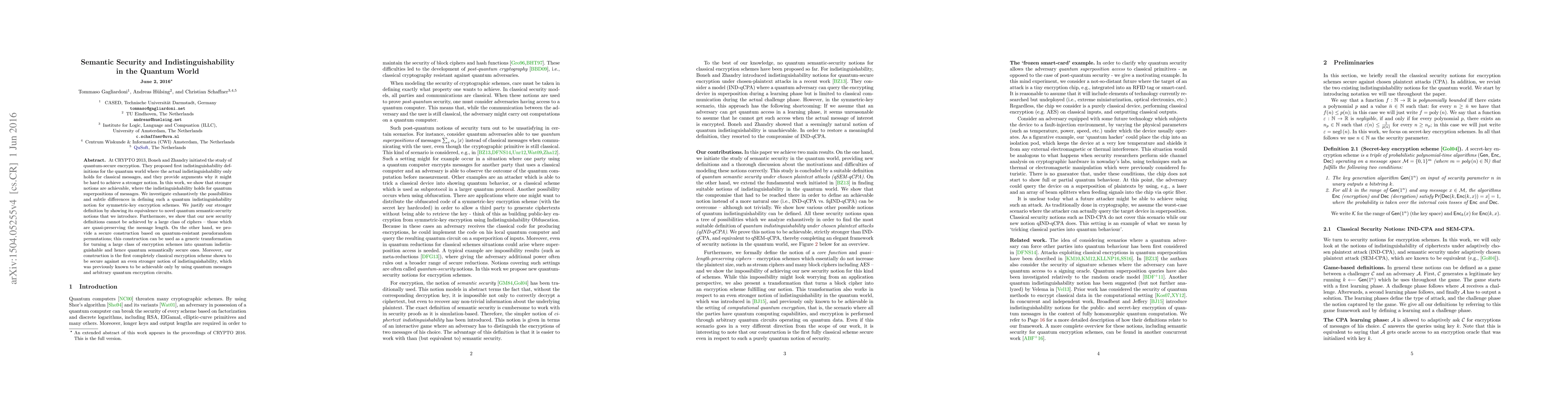 This paper advances the study of quantum-secure encryption by proposing stronger notions of indistinguishability that apply to quantum superpositions, and introduces novel quantum semantic-security definitions. It also presents a secure classical encryption construction based on quantum-resistant pseudorandom permutations, capable of transforming many existing schemes into quantum indistinguishable and semantically secure ones.