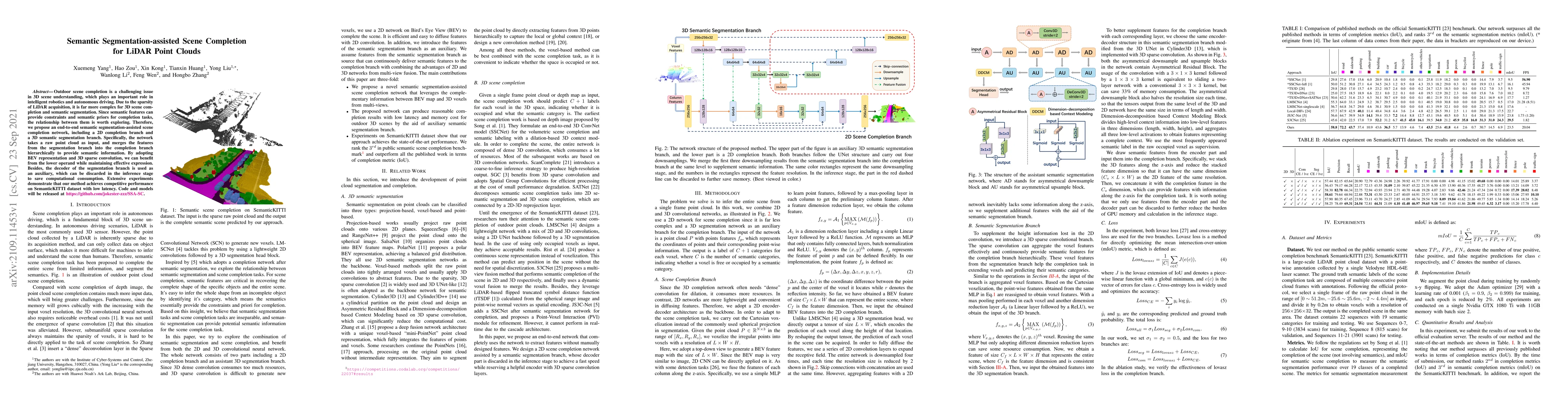 This paper proposes a semantic segmentation-assisted network for completing sparse LiDAR point clouds, integrating semantic segmentation to provide contextual constraints. The method achieves competitive performance on the SemanticKITTI dataset, balancing efficiency and effectiveness.