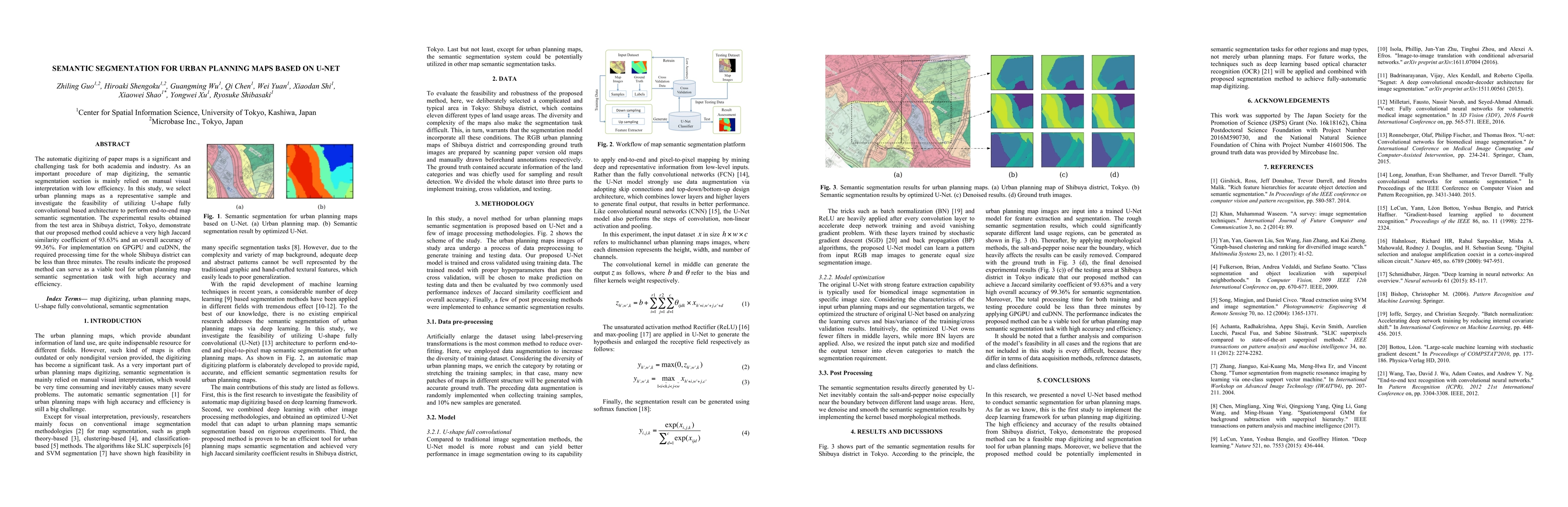The automatic digitizing of paper maps is a significant and challenging task for both academia and industry. As an important procedure of map digitizing, the semantic segmentation section mainly relies on manual visual interpretation with low efficiency. In this study, we select urban planning maps as a representative sample and investigate the feasibility of utilizing U-shape fully convolutional based architecture to perform end-to-end map semantic segmentation. The experimental results obtained from the test area in Shibuya district, Tokyo, demonstrate that our proposed method could achieve a very high Jaccard similarity coefficient of 93.63% and an overall accuracy of 99.36%. For implementation on GPGPU and cuDNN, the required processing time for the whole Shibuya district can be less than three minutes. The results indicate the proposed method can serve as a viable tool for urban planning map semantic segmentation task with high accuracy and efficiency.