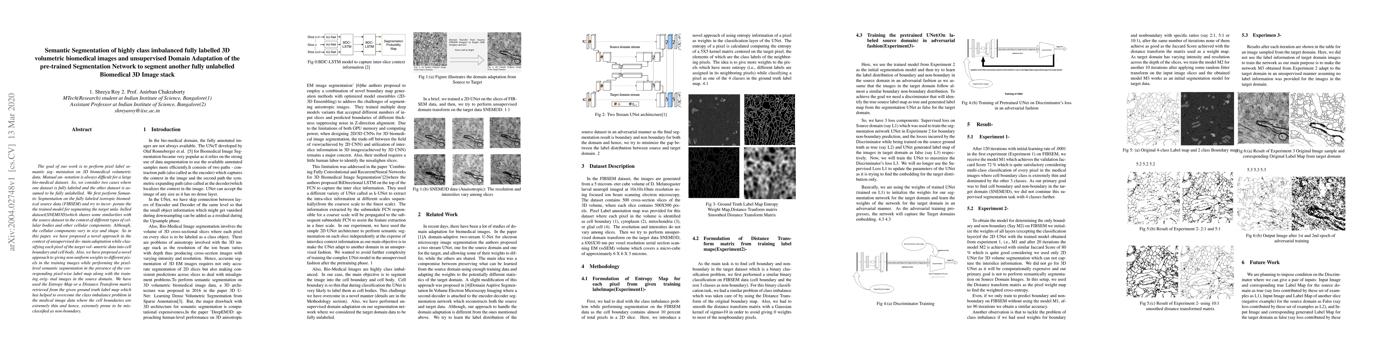 This research paper proposes a novel approach to semantic segmentation of 3D biomedical images, focusing on unsupervised domain adaptation for class-imbalanced data, and improving accuracy through weighted pixel classification.