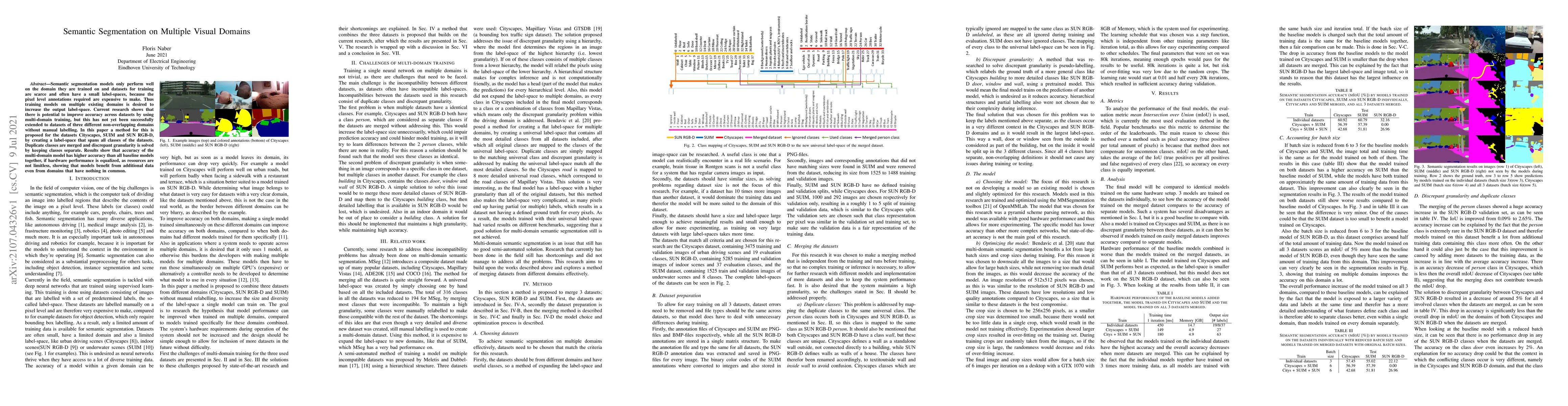 Semantic segmentation models only perform well on the domain they are trained on and datasets for training are scarce and often have a small label-spaces, because the pixel level annotations required are expensive to make. Thus training models on multiple existing domains is desired to increase the output label-space. Current research shows that there is potential to improve accuracy across datasets by using multi-domain training, but this has not yet been successfully extended to datasets of three different non-overlapping domains without manual labelling. In this paper a method for this is proposed for the datasets Cityscapes, SUIM and SUN RGB-D, by creating a label-space that spans all classes of the datasets. Duplicate classes are merged and discrepant granularity is solved by keeping classes separate. Results show that accuracy of the multi-domain model has higher accuracy than all baseline models together, if hardware performance is equalized, as resources are not limitless, showing that models benefit from additional data even from domains that have nothing in common.