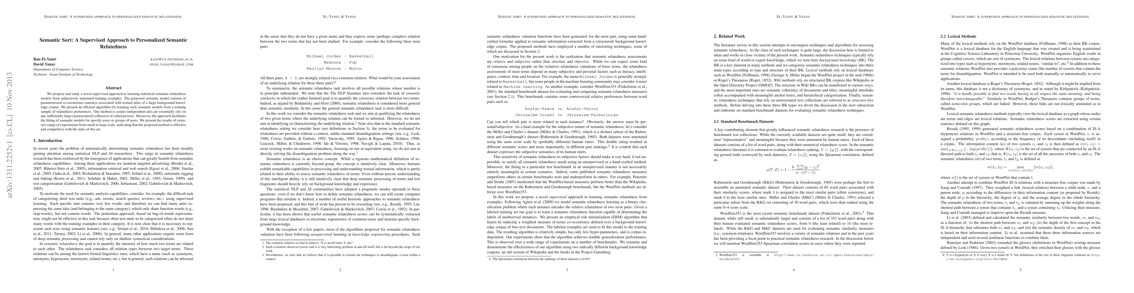 Researchers propose a new supervised approach to learn personalized semantic relatedness models from annotated training examples, with promising results on a range of experiments.