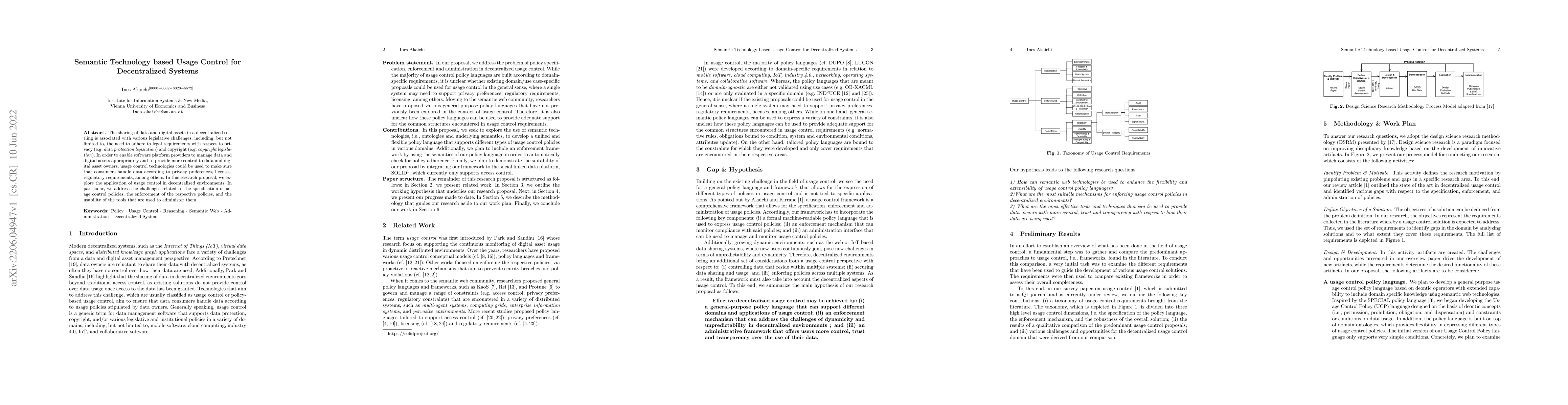 This research paper explores the application of semantic technology-based usage control in decentralized systems to address legislative challenges related to data privacy and copyright. It aims to provide more control to data owners while ensuring compliance with regulations.