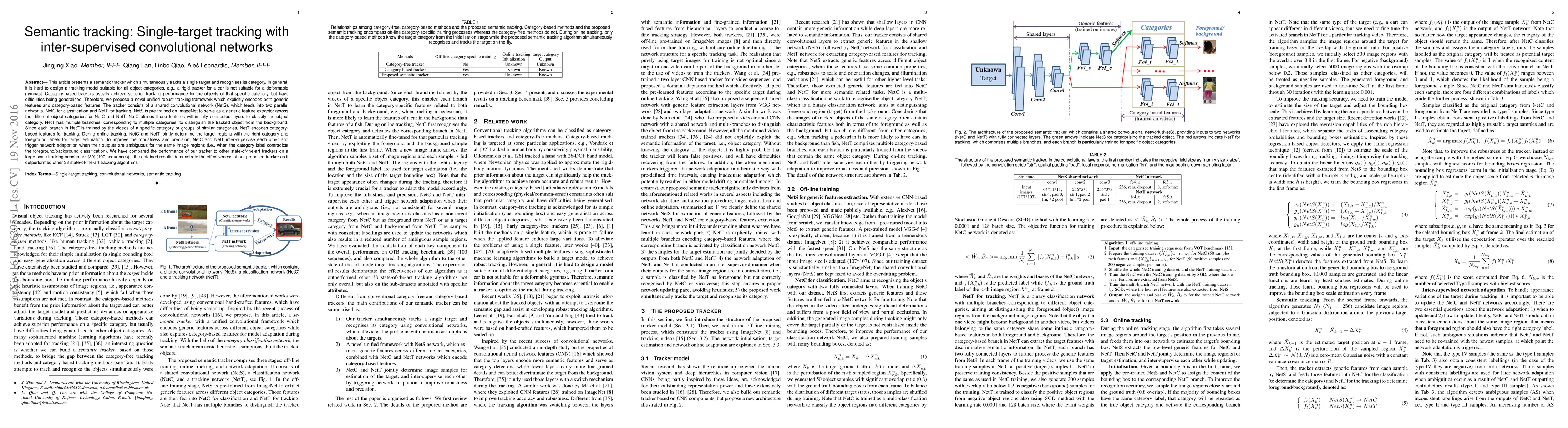 This article presents a semantic tracker which simultaneously tracks a single target and recognises its category. In general, it is hard to design a tracking model suitable for all object categories, e.g., a rigid tracker for a car is not suitable for a deformable gymnast. Category-based trackers usually achieve superior tracking performance for the objects of that specific category, but have difficulties being generalised. Therefore, we propose a novel unified robust tracking framework which explicitly encodes both generic features and category-based features. The tracker consists of a shared convolutional network (NetS), which feeds into two parallel networks, NetC for classification and NetT for tracking. NetS is pre-trained on ImageNet to serve as a generic feature extractor across the different object categories for NetC and NetT. NetC utilises those features within fully connected layers to classify the object category. NetT has multiple branches, corresponding to multiple categories, to distinguish the tracked object from the background. Since each branch in NetT is trained by the videos of a specific category or groups of similar categories, NetT encodes category-based features for tracking. During online tracking, NetC and NetT jointly determine the target regions with the right category and foreground labels for target estimation. To improve the robustness and precision, NetC and NetT inter-supervise each other and trigger network adaptation when their outputs are ambiguous for the same image regions (i.e., when the category label contradicts the foreground/background classification). We have compared the performance of our tracker to other state-of-the-art trackers on a large-scale tracking benchmark (100 sequences)---the obtained results demonstrate the effectiveness of our proposed tracker as it outperformed other 38 state-of-the-art tracking algorithms.
