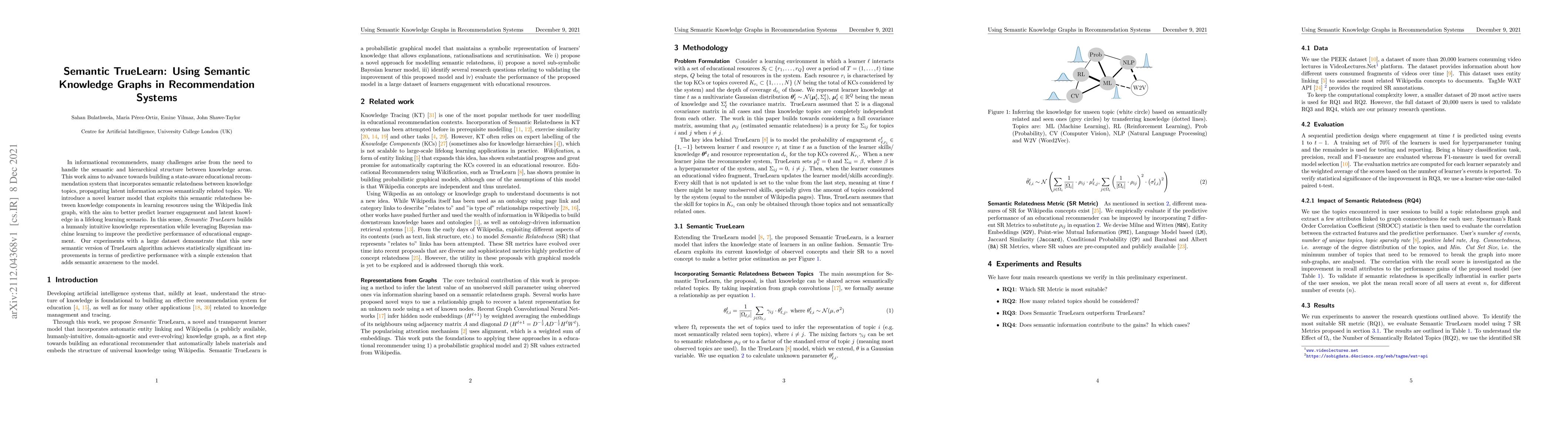 Semantic TrueLearn introduces a novel recommendation system leveraging semantic knowledge graphs to enhance educational recommendations by capturing the hierarchical and semantic relationships between knowledge topics. The model, which uses the Wikipedia link graph, significantly improves predictive performance for learner engagement and latent knowledge in lifelong learning scenarios.