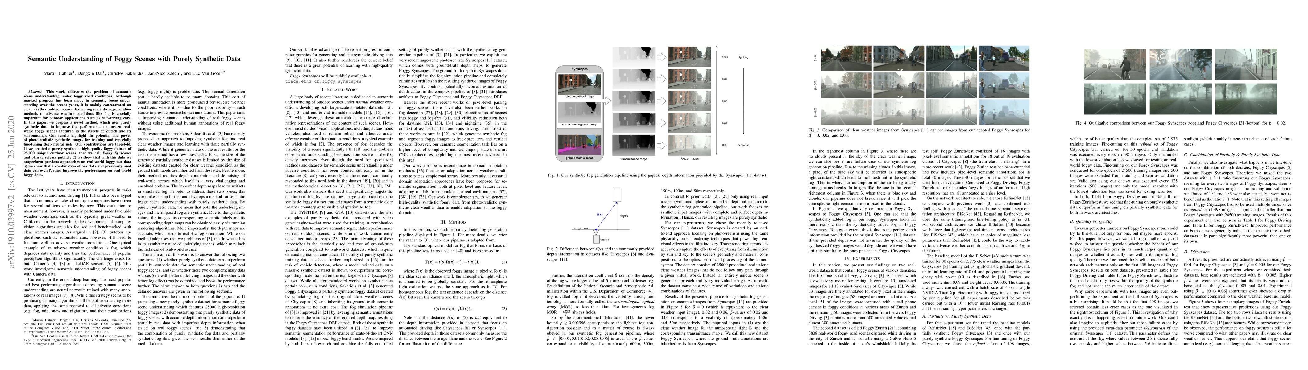 This paper proposes a method to enhance semantic understanding of foggy scenes using purely synthetic data, creating a new synthetic foggy dataset called Foggy Synscapes. The study demonstrates improved performance on real-world foggy data, showing the effectiveness of synthetic training for adverse weather conditions.