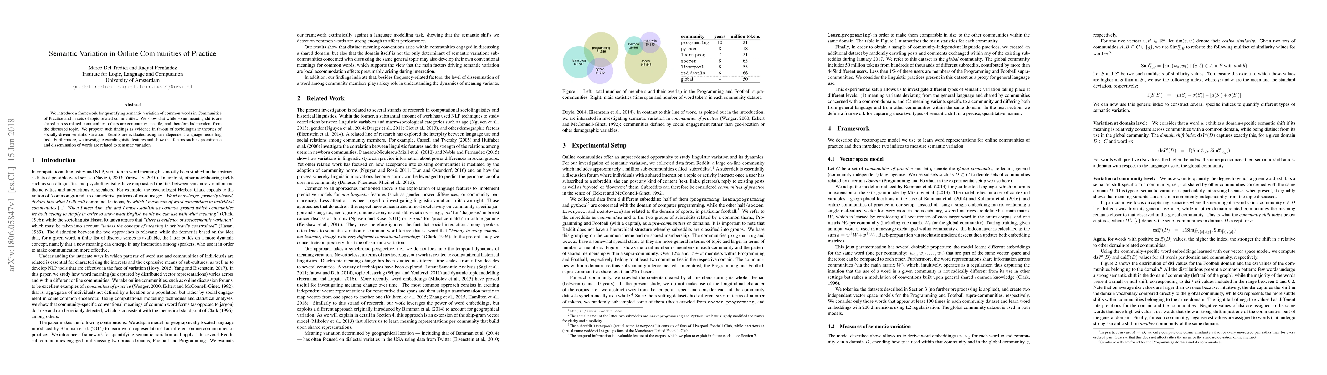 Researchers found that semantic variation in online communities of practice is driven by community-specific factors, challenging traditional theories. They proposed a framework to quantify this variation and its relationship with extralinguistic features like prominence and dissemination.