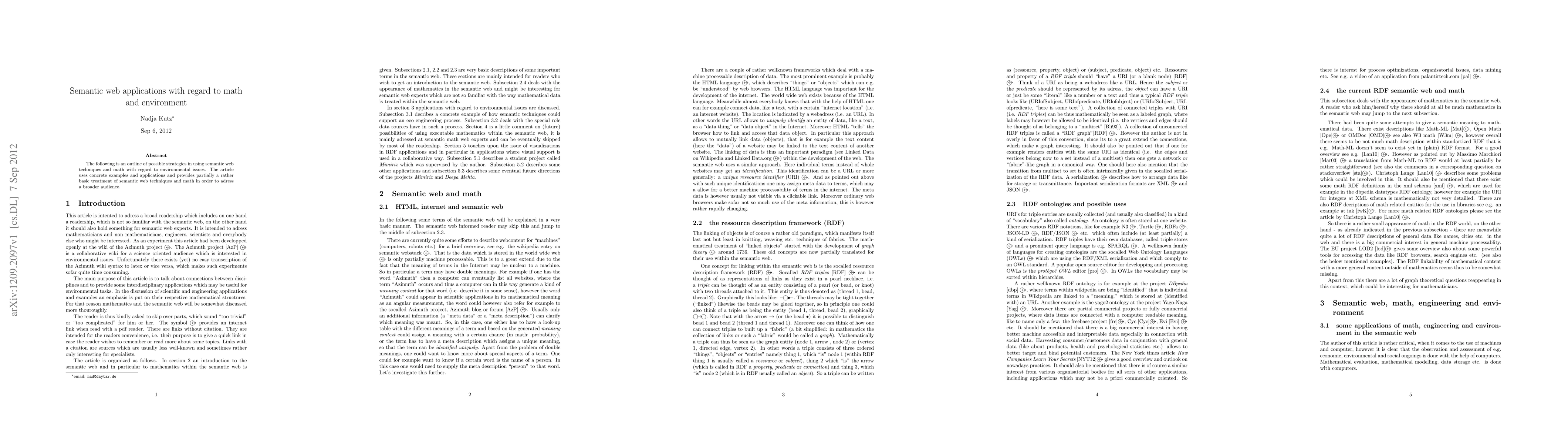The following is an outline of possible strategies in using semantic web techniques and math with regard to environmental issues. The article uses concrete examples and applications and provides partially a rather basic treatment of semantic web techniques and math in order to adress a broader audience.