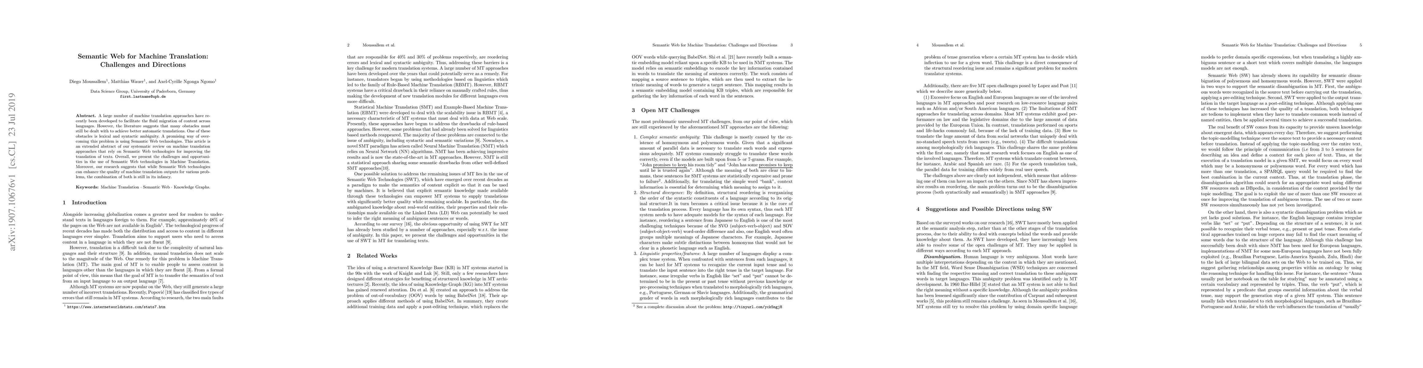 This work contributes to the field by systematically reviewing existing machine translation approaches that leverage Semantic Web technologies, identifying key challenges, and suggesting potential directions for future research.
