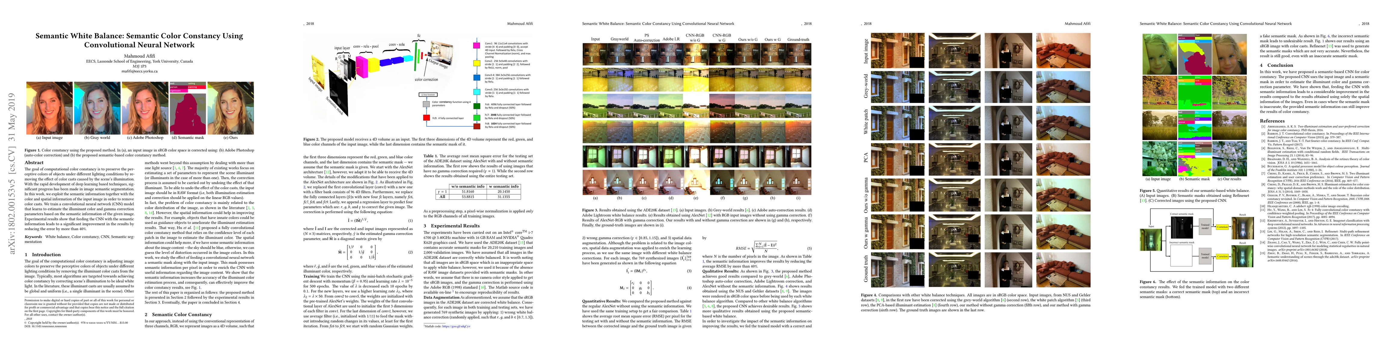 This work stands out by being one of the first to incorporate semantic information in a CNN for color constancy, demonstrating significant improvements over traditional methods that rely solely on spatial information.