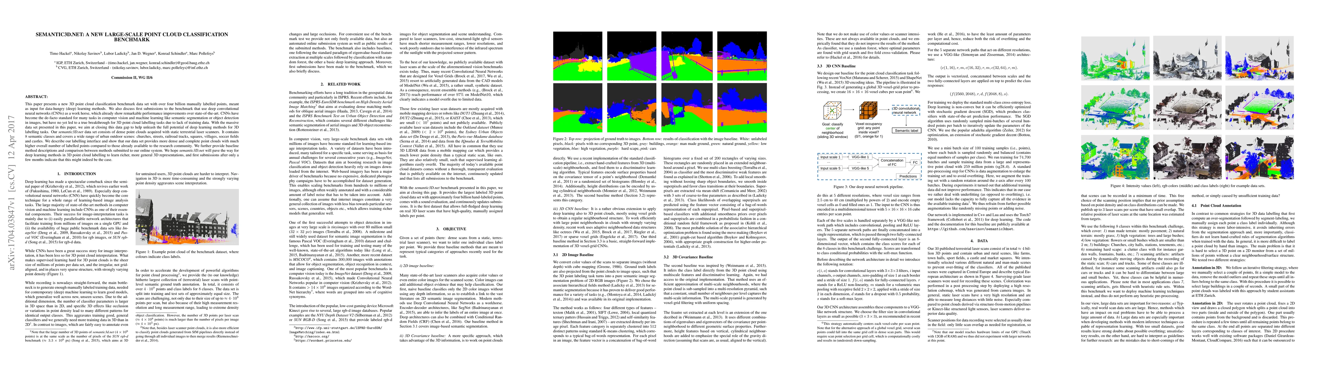 This paper presents a new 3D point cloud classification benchmark data set with over four billion manually labelled points, meant as input for data-hungry (deep) learning methods. We also discuss first submissions to the benchmark that use deep convolutional neural networks (CNNs) as a work horse, which already show remarkable performance improvements over state-of-the-art. CNNs have become the de-facto standard for many tasks in computer vision and machine learning like semantic segmentation or object detection in images, but have no yet led to a true breakthrough for 3D point cloud labelling tasks due to lack of training data. With the massive data set presented in this paper, we aim at closing this data gap to help unleash the full potential of deep learning methods for 3D labelling tasks. Our semantic3D.net data set consists of dense point clouds acquired with static terrestrial laser scanners. It contains 8 semantic classes and covers a wide range of urban outdoor scenes: churches, streets, railroad tracks, squares, villages, soccer fields and castles. We describe our labelling interface and show that our data set provides more dense and complete point clouds with much higher overall number of labelled points compared to those already available to the research community. We further provide baseline method descriptions and comparison between methods submitted to our online system. We hope semantic3D.net will pave the way for deep learning methods in 3D point cloud labelling to learn richer, more general 3D representations, and first submissions after only a few months indicate that this might indeed be the case.
