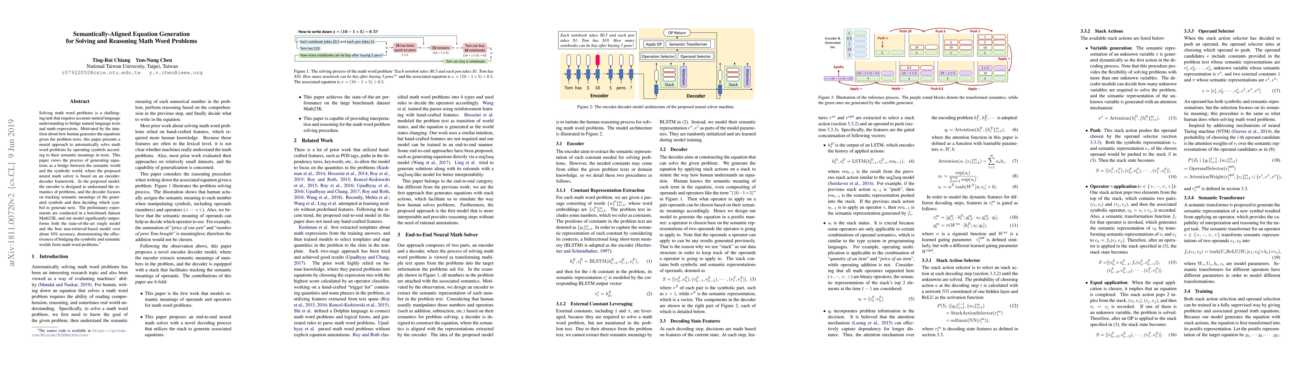 This paper introduces a neural approach to solve math word problems by aligning semantic meanings with symbolic equations, using an encoder-decoder framework. Preliminary experiments on the Math23K dataset show a 10% accuracy improvement over state-of-the-art models, highlighting the effectiveness of bridging semantic and symbolic worlds.