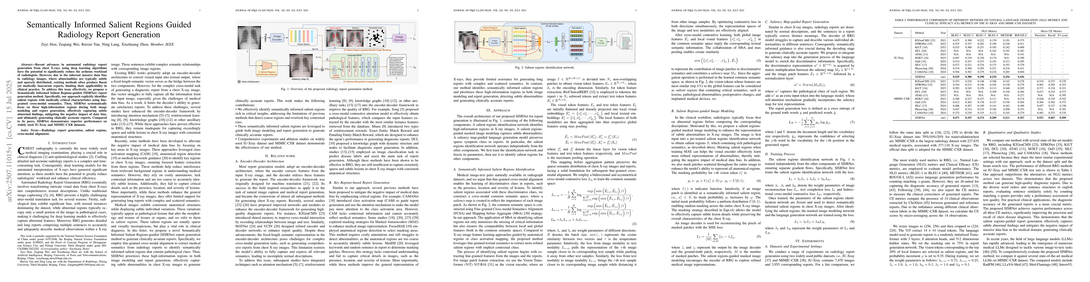 Recent advances in automated radiology report generation from chest X-rays using deep learning algorithms have the potential to significantly reduce the arduous workload of radiologists. However, due to the inherent massive data bias in radiology images, where abnormalities are typically subtle and sparsely distributed, existing methods often produce fluent yet medically inaccurate reports, limiting their applicability in clinical practice. To address this issue effectively, we propose a Semantically Informed Salient Regions-guided (SISRNet) report generation method. Specifically, our approach explicitly identifies salient regions with medically critical characteristics using fine-grained cross-modal semantics. Then, SISRNet systematically focuses on these high-information regions during both image modeling and report generation, effectively capturing subtle abnormal findings, mitigating the negative impact of data bias, and ultimately generating clinically accurate reports. Compared to its peers, SISRNet demonstrates superior performance on widely used IU-Xray and MIMIC-CXR datasets.