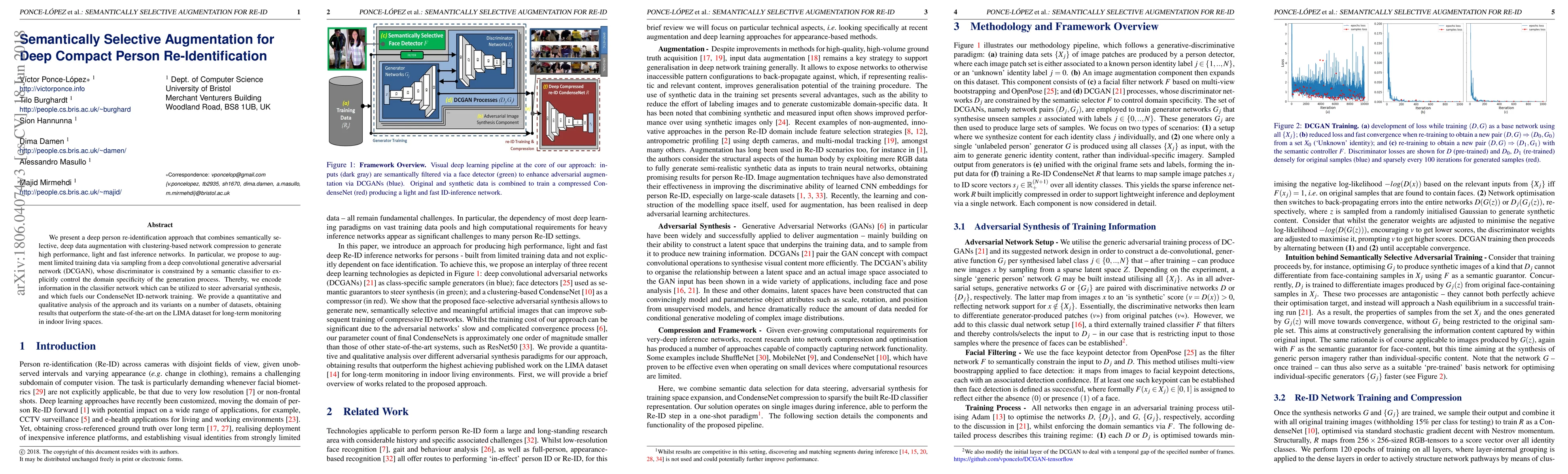 This paper proposes a deep person re-identification method that uses semantically selective data augmentation via a DCGAN and employs clustering-based network compression for efficient inference. The approach enhances training data with domain-specific synthetic samples and achieves state-of-the-art performance on the LIMA dataset.