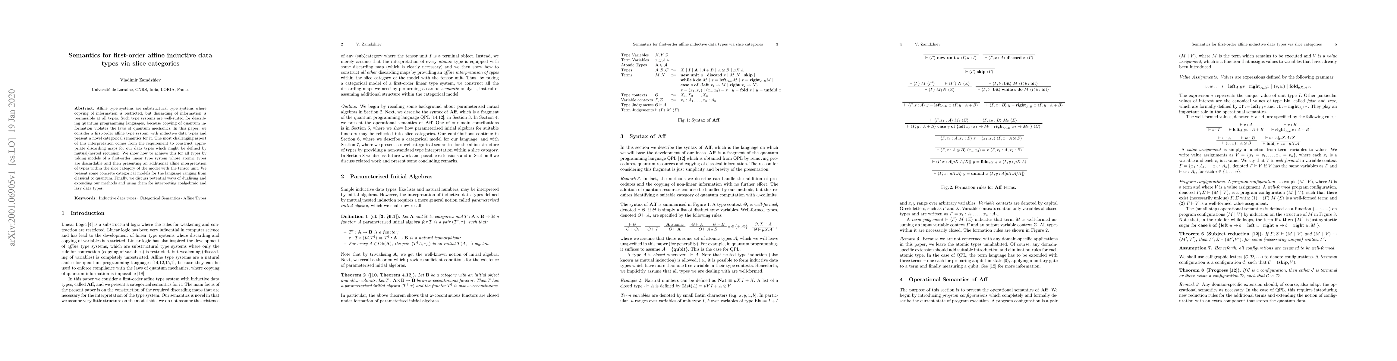This paper introduces a novel categorical semantics for first-order affine type systems with inductive data types, focusing on constructing appropriate discarding maps for mutual/nested recursion. It leverages slice categories to achieve this, presenting models ranging from classical to quantum systems.